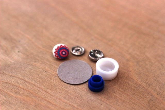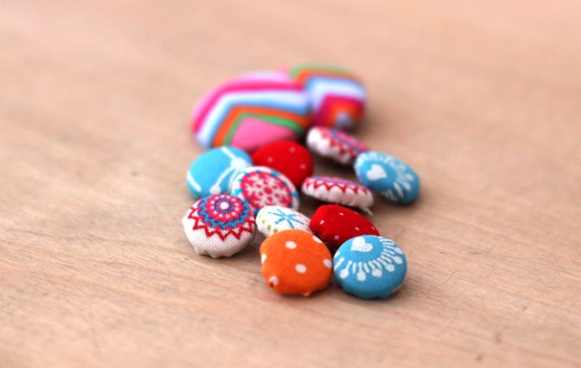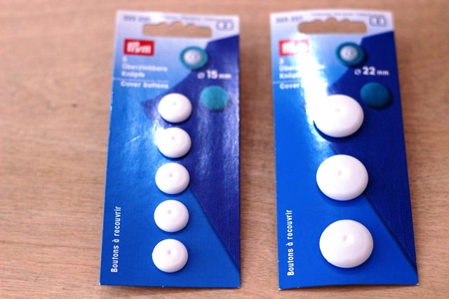 Hier kommt was für Upcycling-Spezialisten und Individualisten: Aus dem allerkleinstenen Stoffrest kann man den allergroßartigsten Knopf zaubern. Einen wie keinen. Mit „beziehbaren Knöpfen“ geht das ganz easy. Es gibt ganz unterschiedliche, fertige Packages zu kaufen. Da ist alles drin, was man zum Knöpfe beziehen braucht – die Rohlinge und das Werkzeug. Das sieht dann zum Beispiel so aus:
