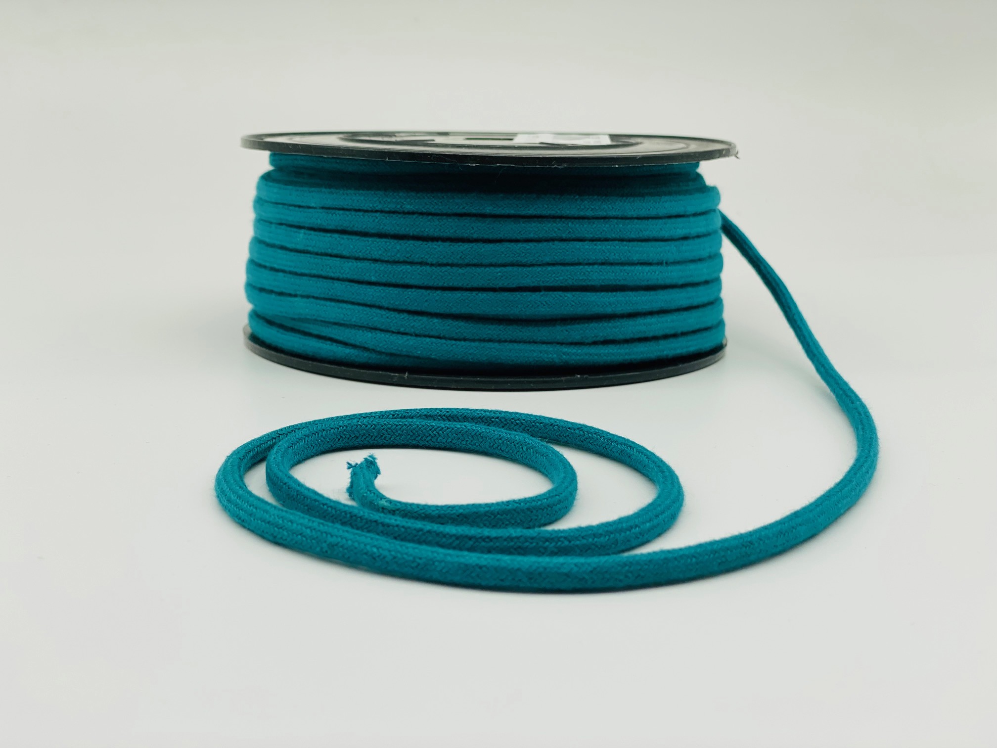 Farbige Baumwollkordel 4 mm breit in Petrolgrün, glatt gewebte Meterware für Turnbeutel, Hoodies und vieles mehr. 100% Baumwolle, waschbar. In weiteren Farben erhältlich.