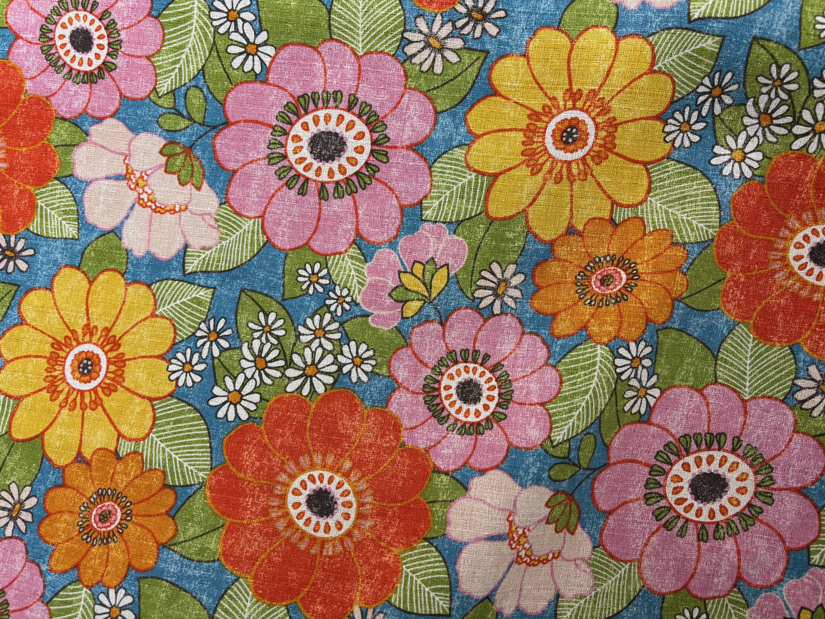Nice! Blumendesign in bunten Farben. Reizvoll, die leicht strukturierte Oberfläche, Stoff aus Japan. 100% Baumwolle, 110 cm breit. Von KOKKA. Für Kissen, Vorhänge, Taschen, modische Accessoires und vieles mehr.