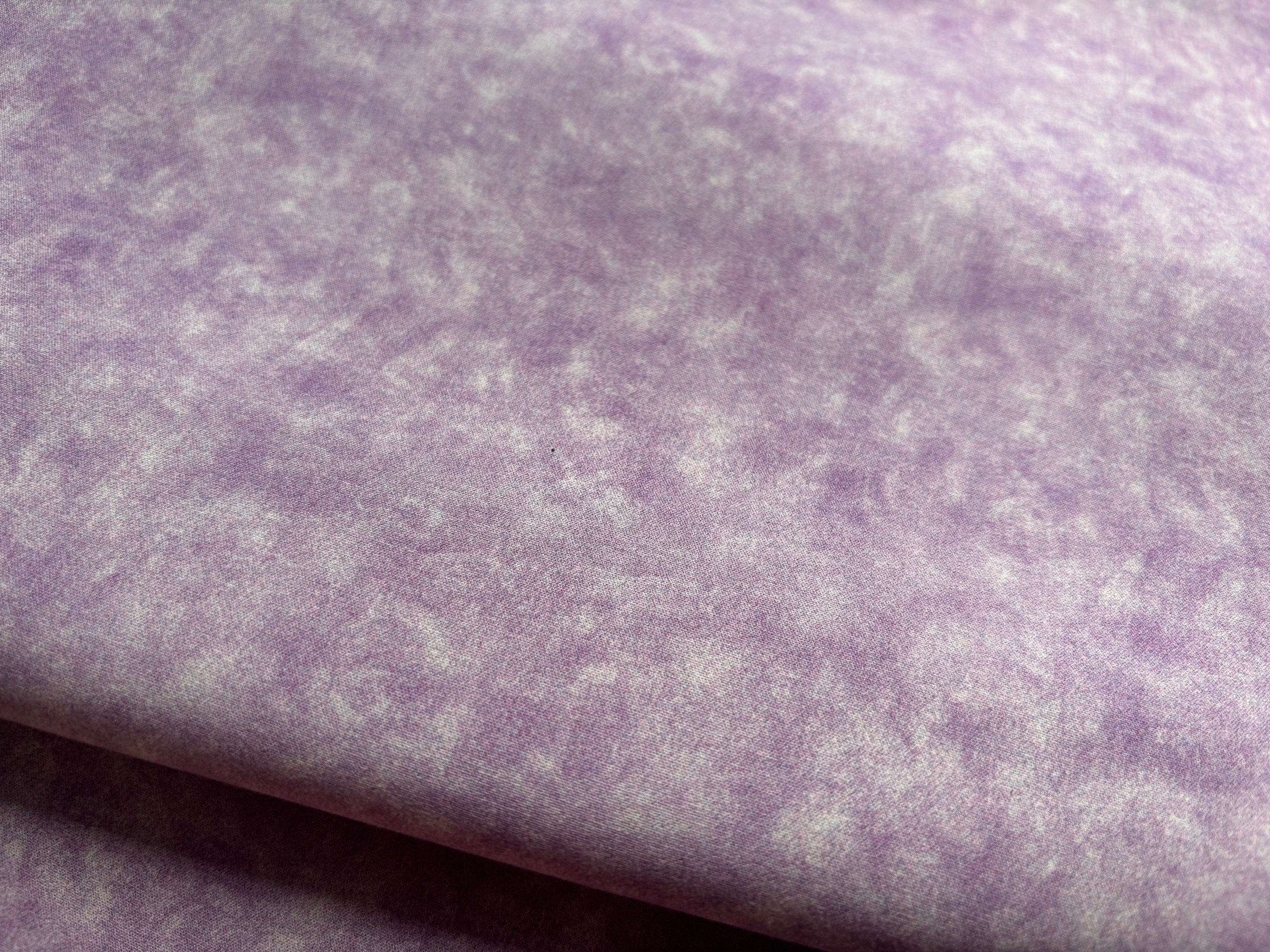 Baumwolldruck mit marmoriertem, wolkigen Design in hellem Lila. Vielseitig kombinierbar, für Heimtextilien, Accessoires, Patchwork, Quilt und mehr. 100% Baumwolle, 150 cm breit, 120 g/m.²