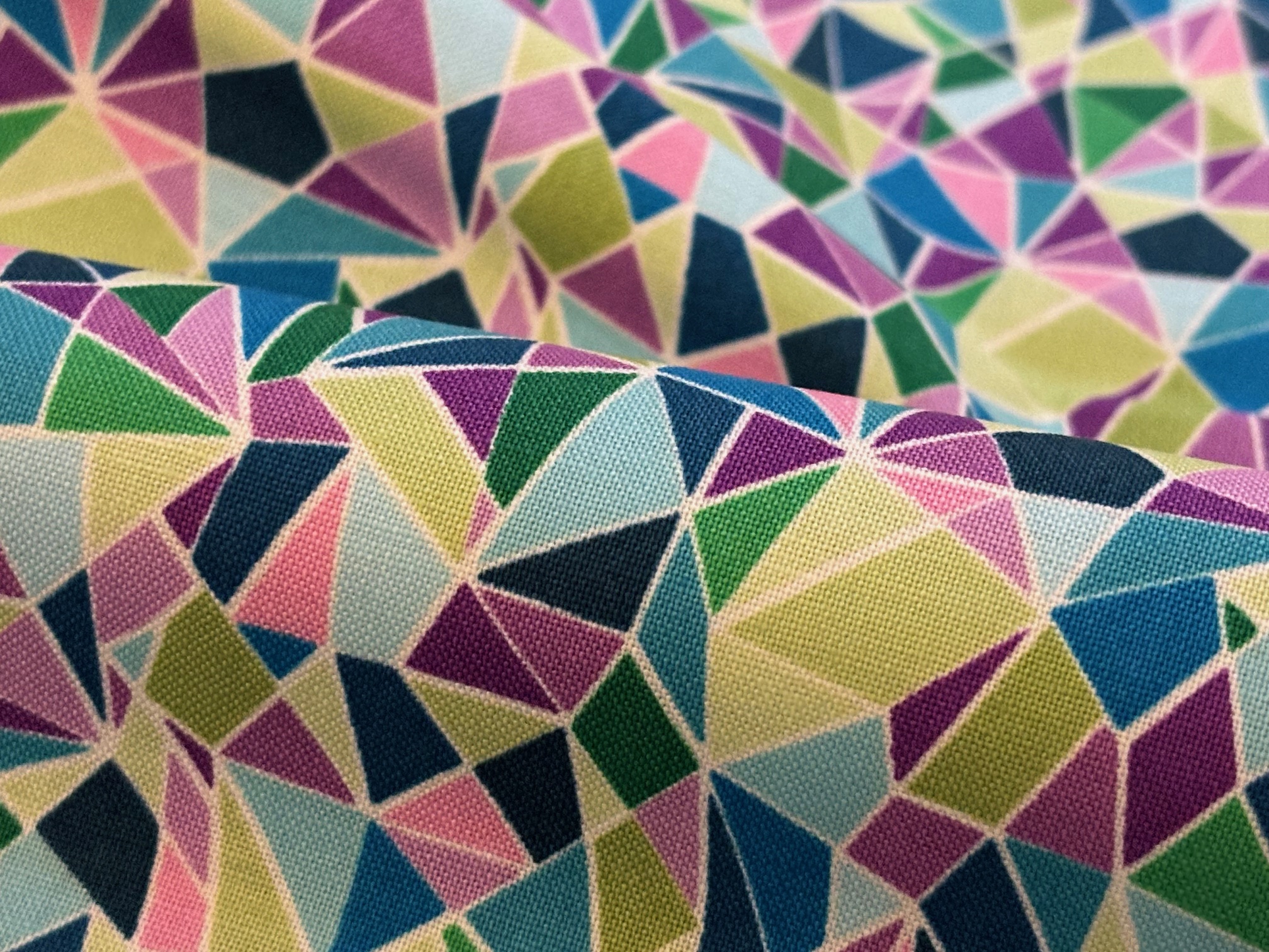 Tropica - Wie der Blick durch ein Kaleidoskop - dieser Stoff fällt sofort auf. Mosaiksteinchen in tollen Farben - Petrolblau, Grün, Türkis und Violett. Was für ein schönes Muster! Vielseitig kombinierbar. 100% Baumwolle, Breite 110 cm.
