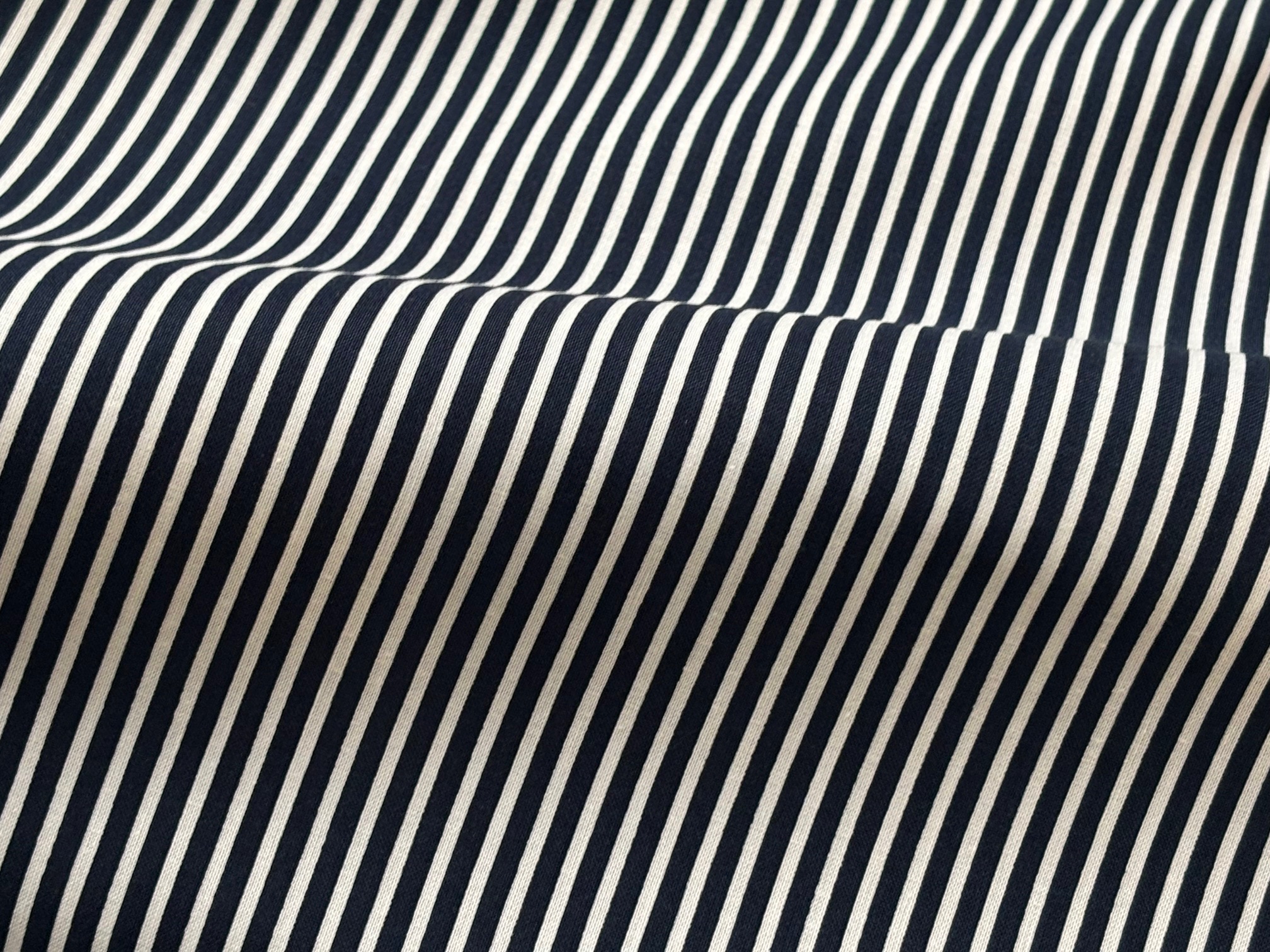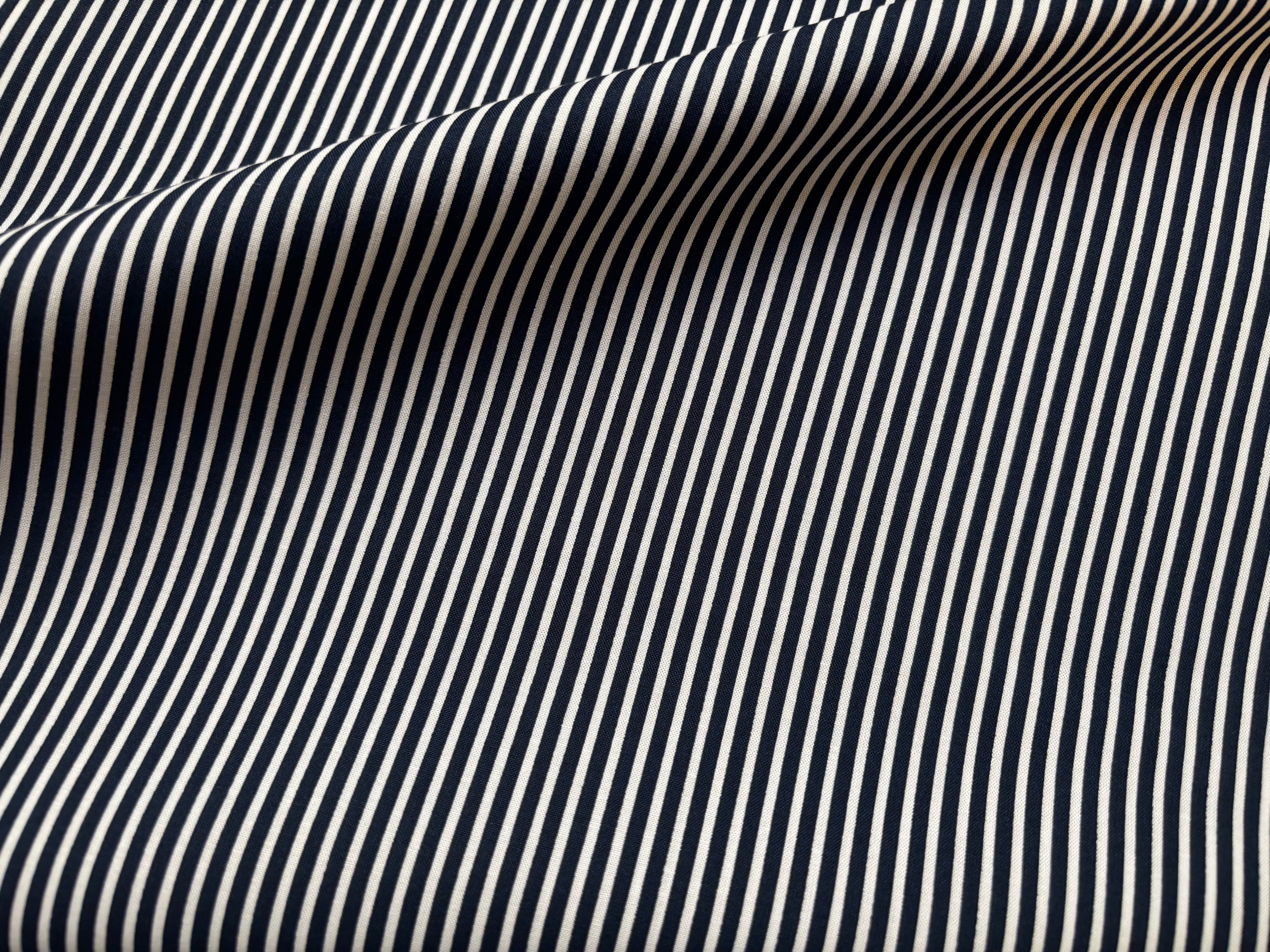 Baumwollstoff, Popeline mit Streifen in Hellblau (3 mm breit) und Weiß (2 mm breit), 100% Baumwolle, 150 cm breit, 130 g/m2.