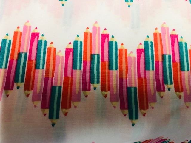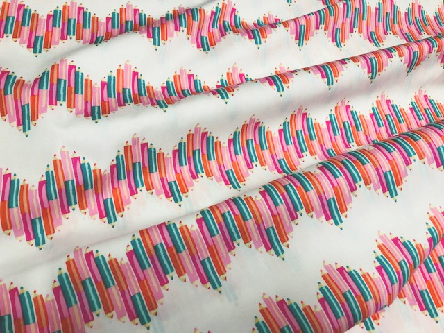 Baumwolldruck Playroom, bunte Bleistifte ((5 cm lang) im Zickzack, Pink, Orange, MIntgrün auf Natur, raffiniertes grafisches Motiv, auch schön für Schultüten. 100% Baumwolle, 110 cm breit