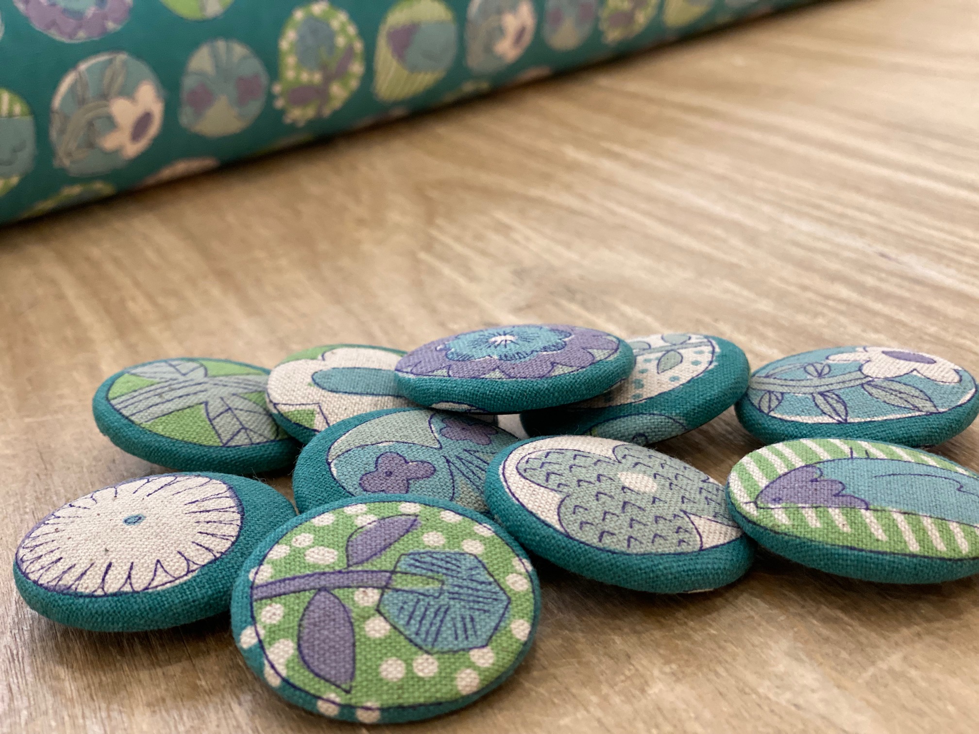 Dekorative, bezogene Knöpfe, Design "Stoff Flowers Lables", Durchmesser 4 cm, für süße Eyecatcher an Accessoires und selbstgenähten Sachen. Nur als Deko. Nicht waschen, da ggf. Rostbildung.