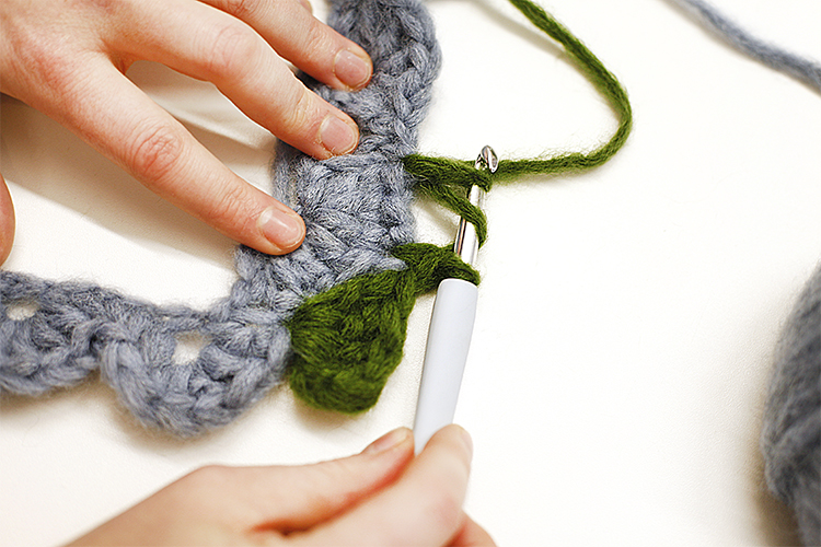 Weiter in die untere Kettmasche stechen und weitere 5 Stäbchen häkeln.
