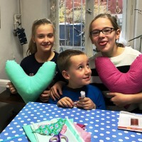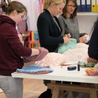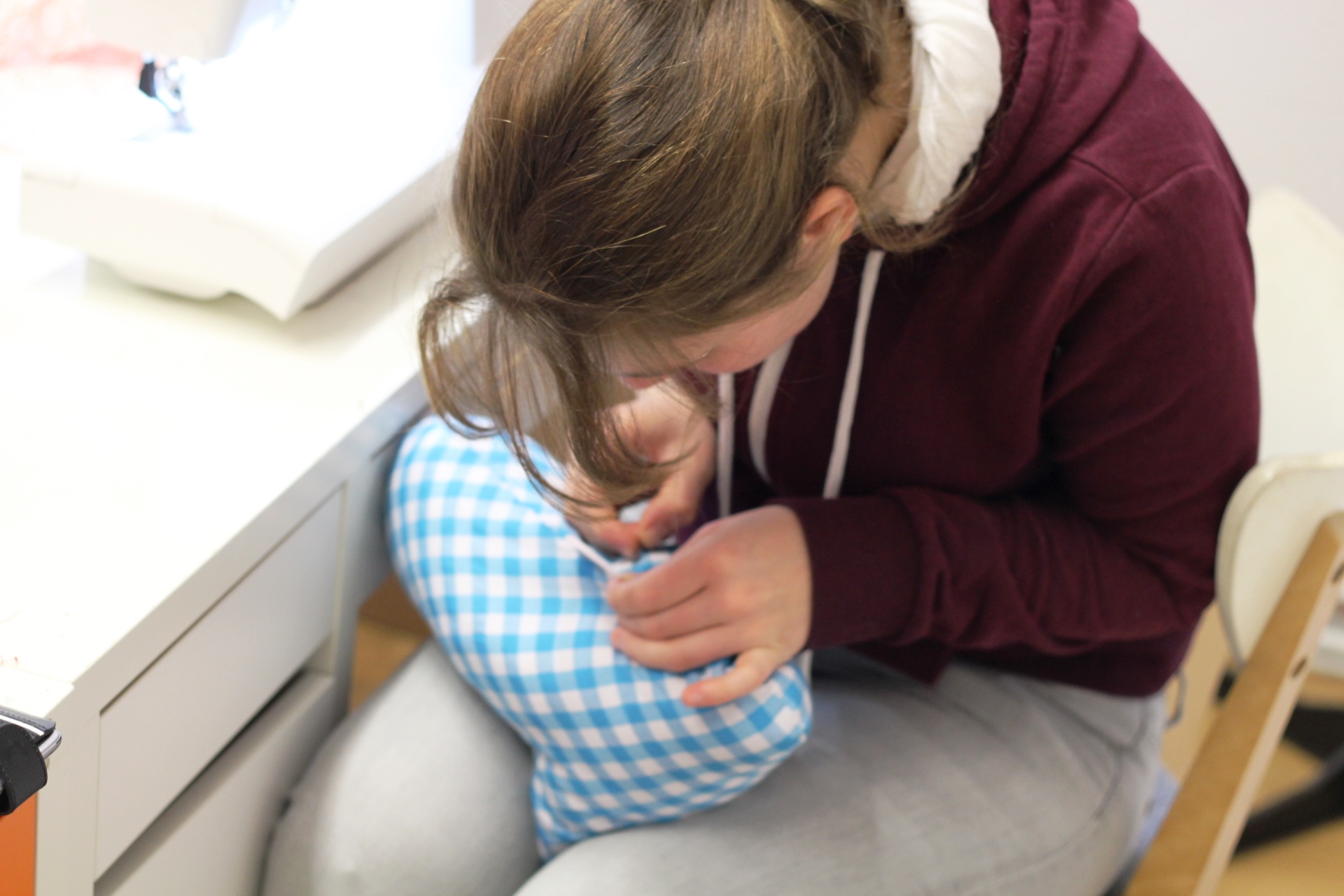 Wir füllen das Kissen mit Watte und stecken Deine Teilnahmekarte in die Lostrommel.