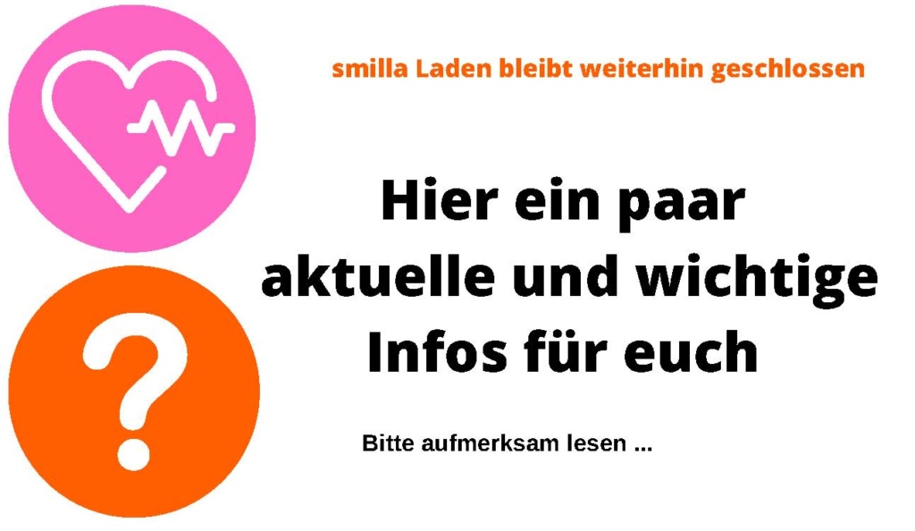Wir reißen uns 6 Beinchen für euch aus! Bleibt geduldig und gesund, habt Verständnis und bleibt uns treu. Es kommen auch wieder andere Zeiten. Und smilla wird wieder wie es einmal war.