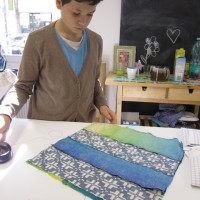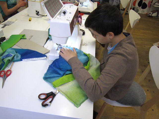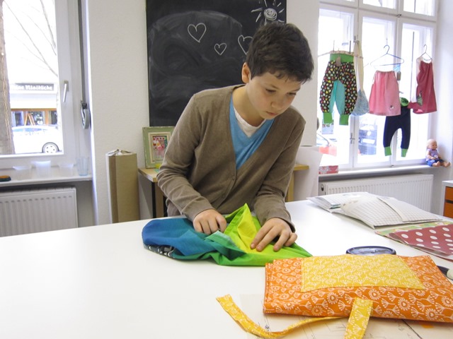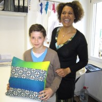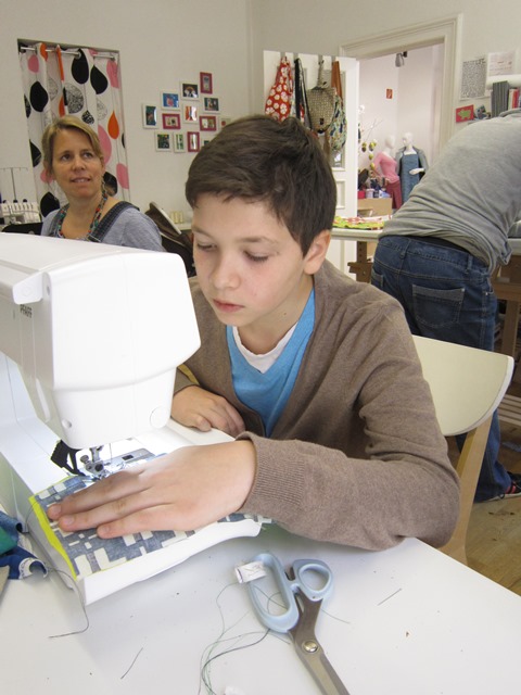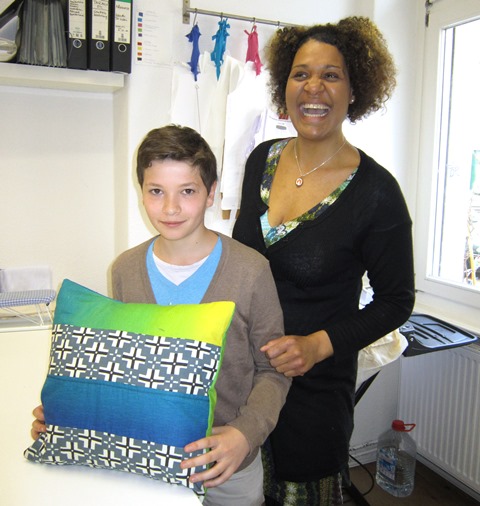 Learning by doing haben wir gedacht und Max gleich ins kalte Nähkurswasser geworfen. Bei Isabell konnte er nicht nur erleben, wie ein Nähkurs gestaltet wird, sondern hat auch gleich selbst ein Projekt realisiert. Mit allem drum und dran, versteht sich: Stoffauswahl, Zuschneiden, Teile aneinanderstecken und richtig zusammen nähen. Hier war Präzision gefragt und Max hat das perfekt gemeistert. Von wegen Mädchenkram, von unseren Computer-Nähmaschinen mit Displayanzeige und Musterprogrammierfunktionen sind auch Jungs schwer begeistert. Am Ende des Kurses hielt unser Max sein erstes selbstkreiertes Kissen in der Hand. Schönes Design, gut gemacht, lieber Max. Vielleicht machst du ja tatsächlich was mit Stoffen später….