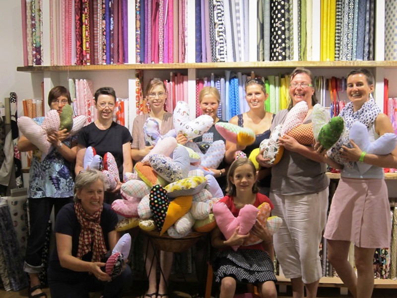 Hobbyschneiderinnen nähen Herzkissen für Brustkrebspatienten