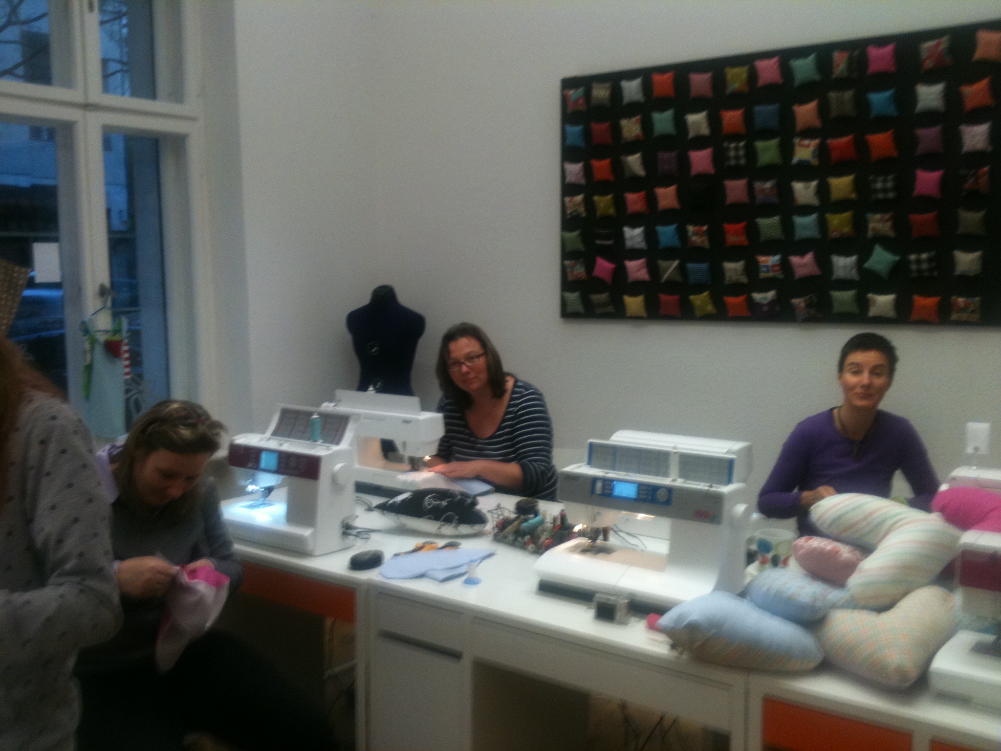 Im letzten Jahr wurden bei smilla Berlin X Herzkissen genäht. Auf dem Bild unten seht ihr die fleissigen Näherinnen bei der Arbeit: Zuschneiden, Abstecken, Nähen, Stopfen und jede Menge Lachen und Spaß. Dieses Jahr wollen wir die magischen 100 Kissen schaffen. Damit das auch möglich ist, hat uns die Firma SWAFING wunderschönen Baumwoll-Stoff zur Verfügung gestellt (Herzlichen Dank!). Füllwatte und Schablonen liegen bereit und unsere Nähmaschinen warten auf Euch. Einfach vorbeikommen, mitnähen und ein bisschen plaudern. Kostet nichts, macht Spaß und bringt Freude!