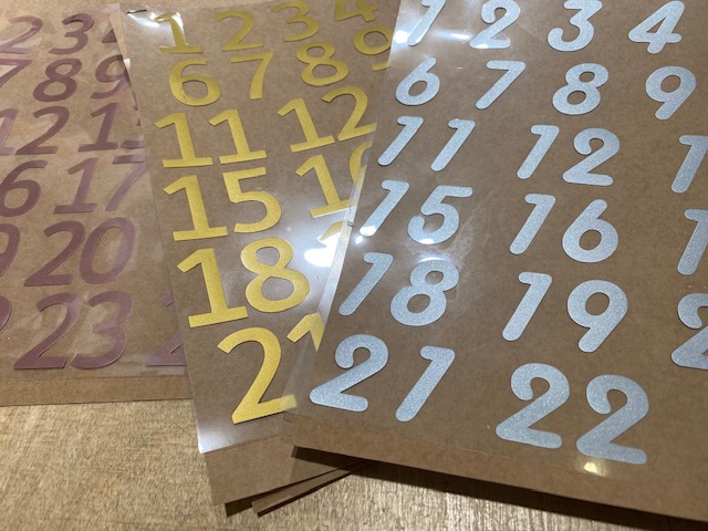 Nun, da gibt es natürlich viele Möglichkeiten. Du musst Dir in jedem Fall schon im Vorfeld überlegen, wie du es machen willst. Unsere Zahlen sind geplottet und können am Schluss einfach drauf gebügelt werden. Das ist sicherlich der einfachste Weg. In unserem Onlineshop und im smilla Laden findest Du unterschiedliche Zahlen-Sets zum Aufbügeln, extra für Adventskalender. Wahlweise in Silber, Gold und Rosé.