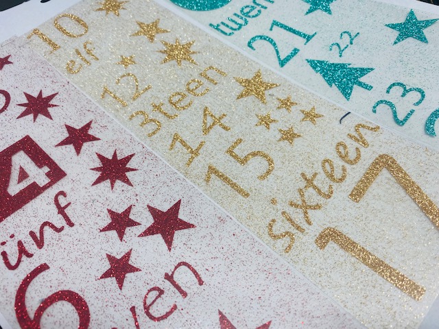 Geplottete Zahlen aus Glitzer-Folie einfach aufbügeln. Fertig ist Dein Adventskalender.
