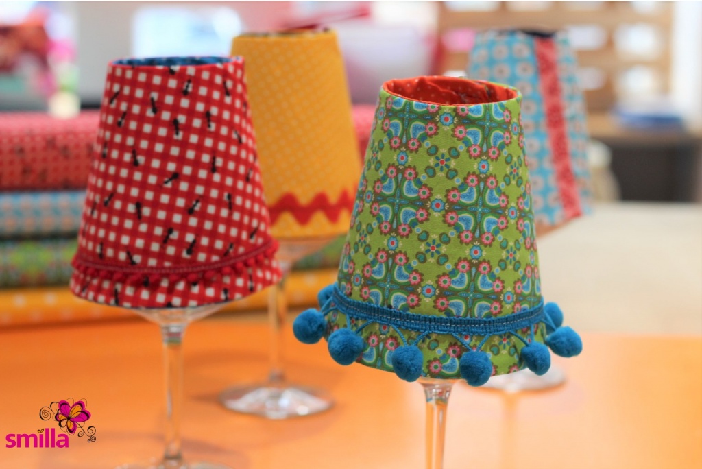 Ein paar Stoffreste, Bommel, Weingläser und Teelichter – viel braucht man nicht für diese witzigen Windlichter von smilla.