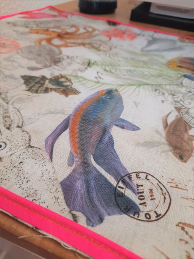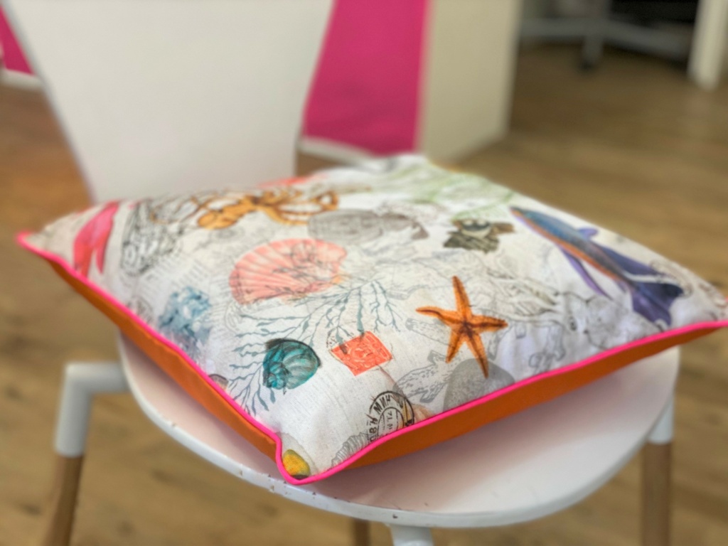 Jeder Stoff verleiht Deinem Kissen mit Hotelverschluss einen anderen Look. Wir haben uns für ein traumhaftes maritimes Design entschieden, eine wunderschöne Unterwasserwelt: „Baumwollstoff Nautilus allover Unterwasserwelt“.