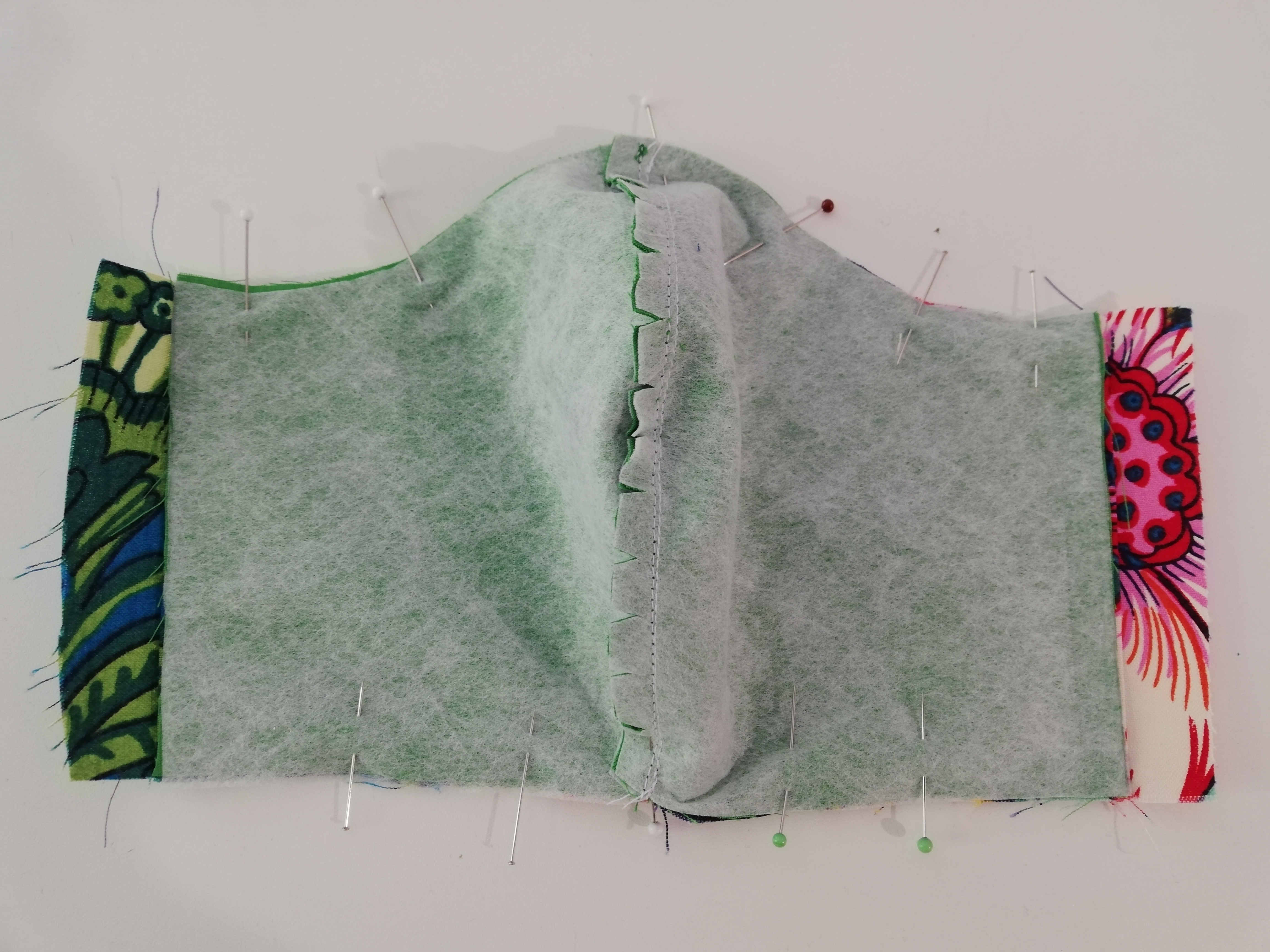 Auch hier wieder an den Rundungen die Nahtzugabe bis kurz vor die Naht einschneiden.