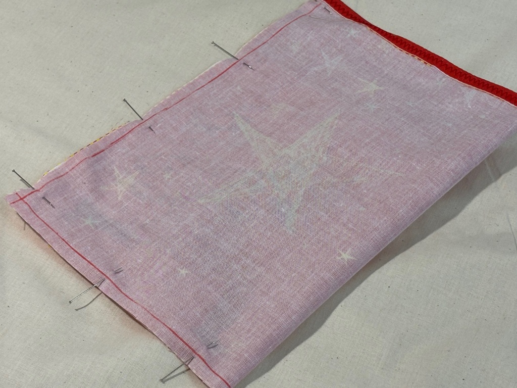 Du siehst, am besten ist es, rotes Garn zu verwenden, dann fällt die Naht kaum auf. Der Zickzackstich verleiht dem Ganzen einen liebenswert selbstgenähten Touch.