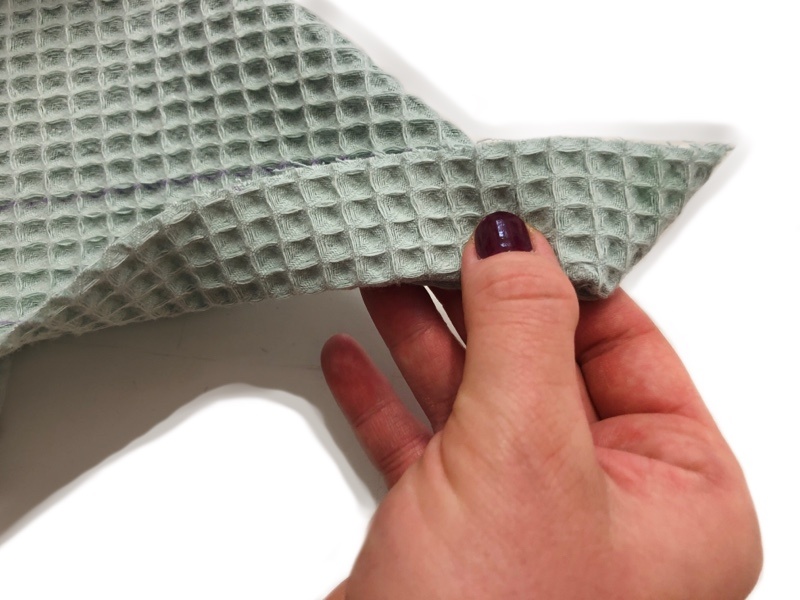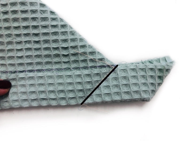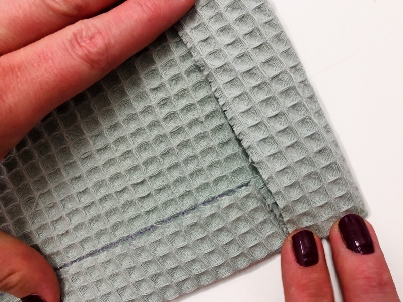 Der Stoff lässt sich zwar nicht gut bügeln, hat aber einen anderen Vorteil – ihr könnt euch an der Struktur orientieren und einfach die Erhebung als Linie sehen. Auch beim Zuschnitt von Waffelpiqué sollte man dies immer beachten und sich, wie beim Vernähen von gestreiften Stoffen, an den vorgegebenen Linien orientieren.