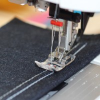 Wenn ihr einen Jeansstoff mit Stretchanteil verarbeitet, welcher sich nur in eine Richtung dehnt, geht ihr wie folgt vor: Zuerst die Stretchnadel einsetzen und die Stoffkanten mit einem Zickzackstich versäubern. Zum Zusammennähen der Stoffteile könnt ihr den normalen Geradstich nehmen, denn der Stoff dehnt ja nicht längs sondern quer. Um nun aber eine strapazierfähigere Naht zu erhalten (was z.B. auch im Schritt von Bedeutung ist), empfielt sich der 3fach Geradstich. 3fach Stiche haben generell mehr Fadenvolumen (die Nähmaschine sticht dreimal statt einmal hin und her), deshalb halten sie viel mehr aus.