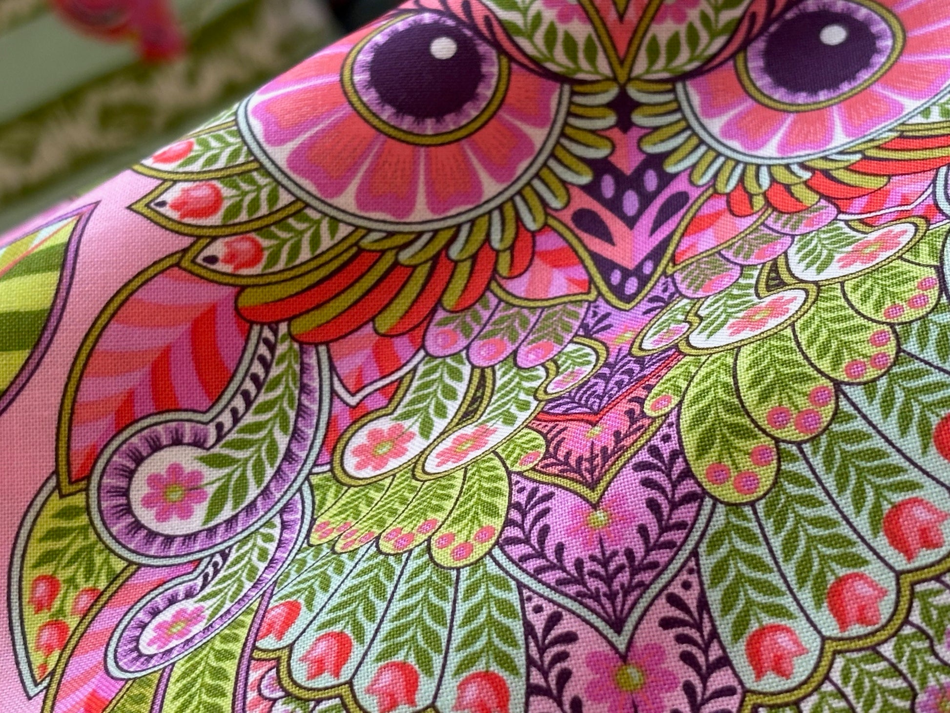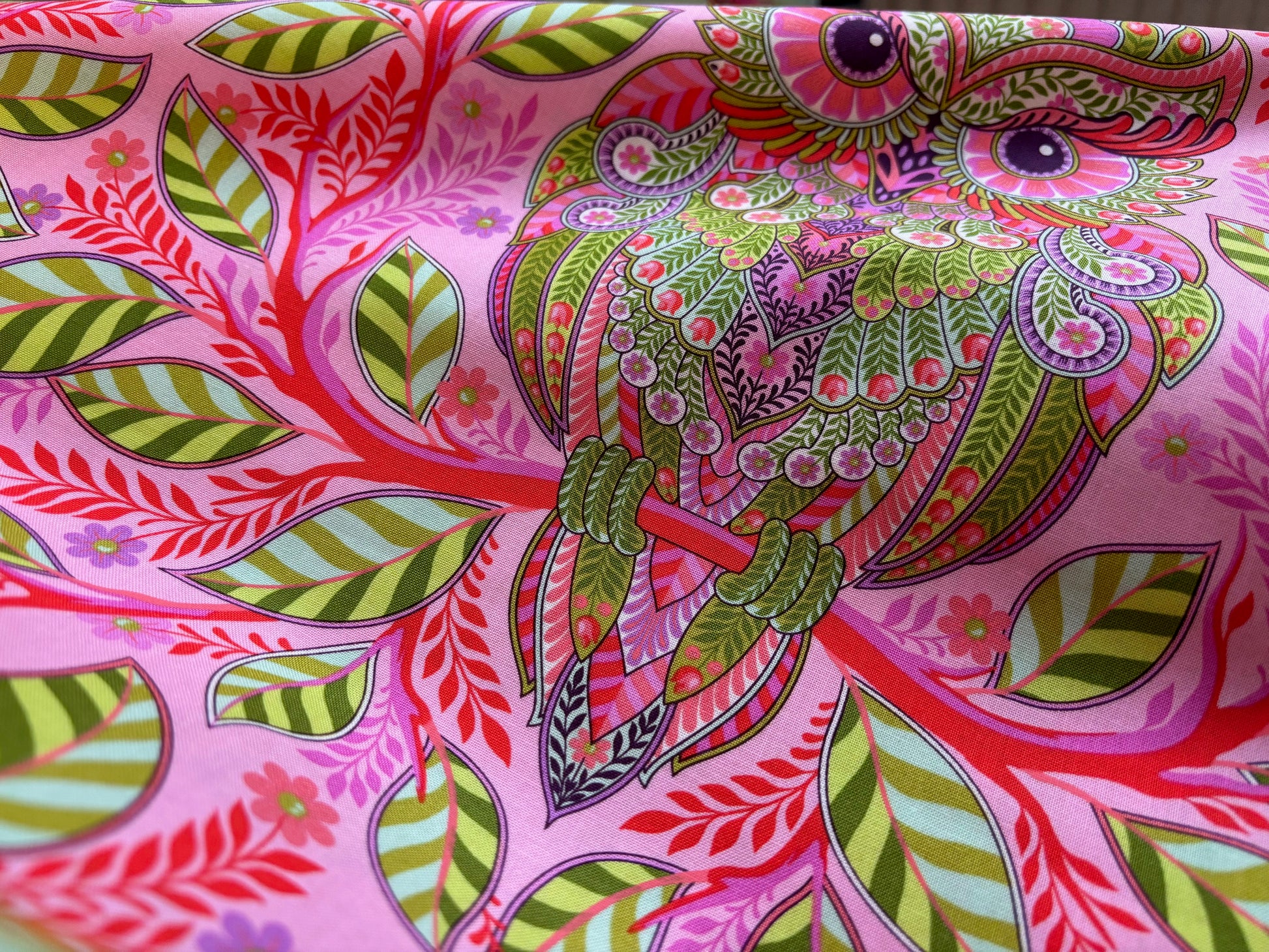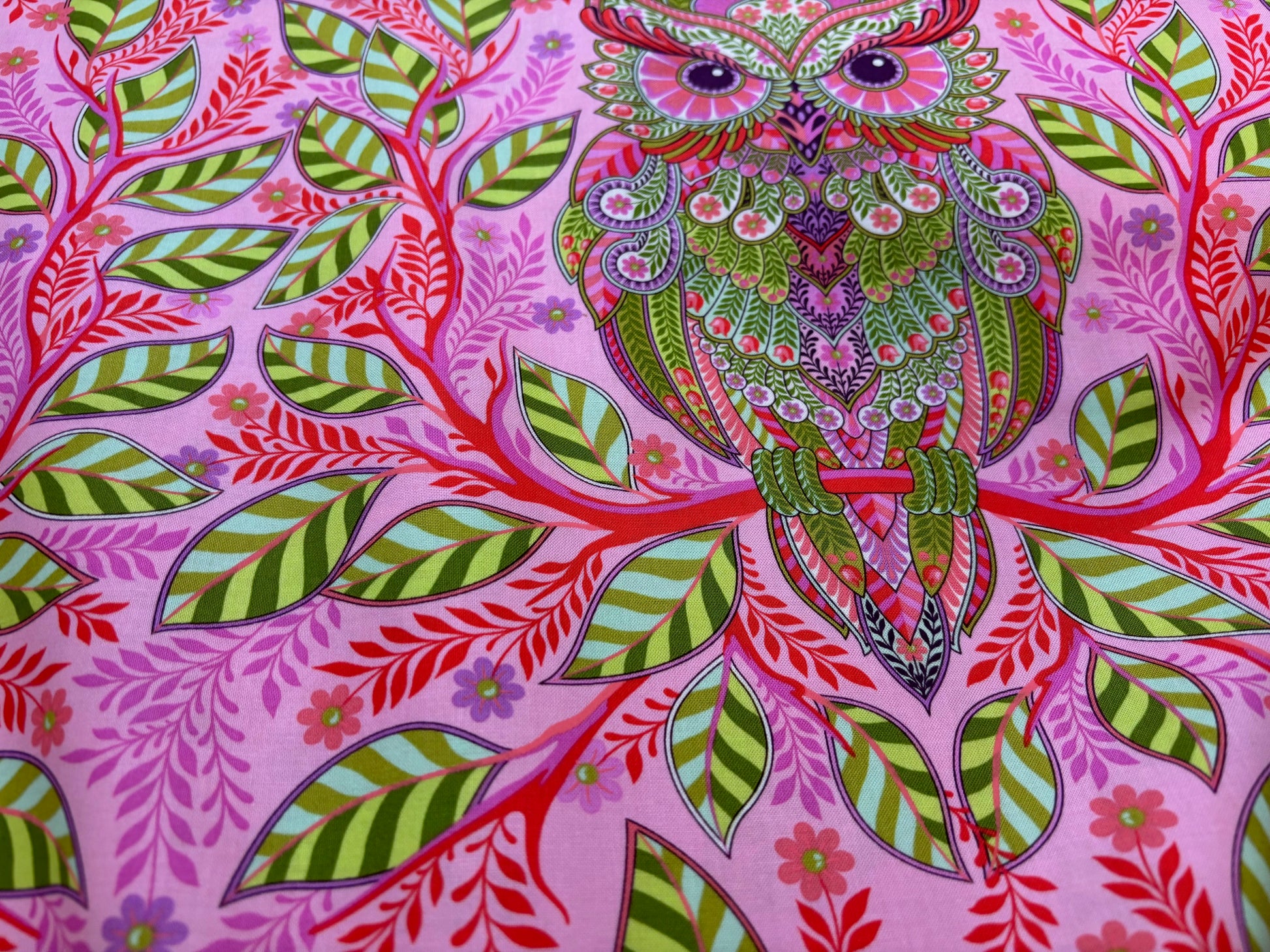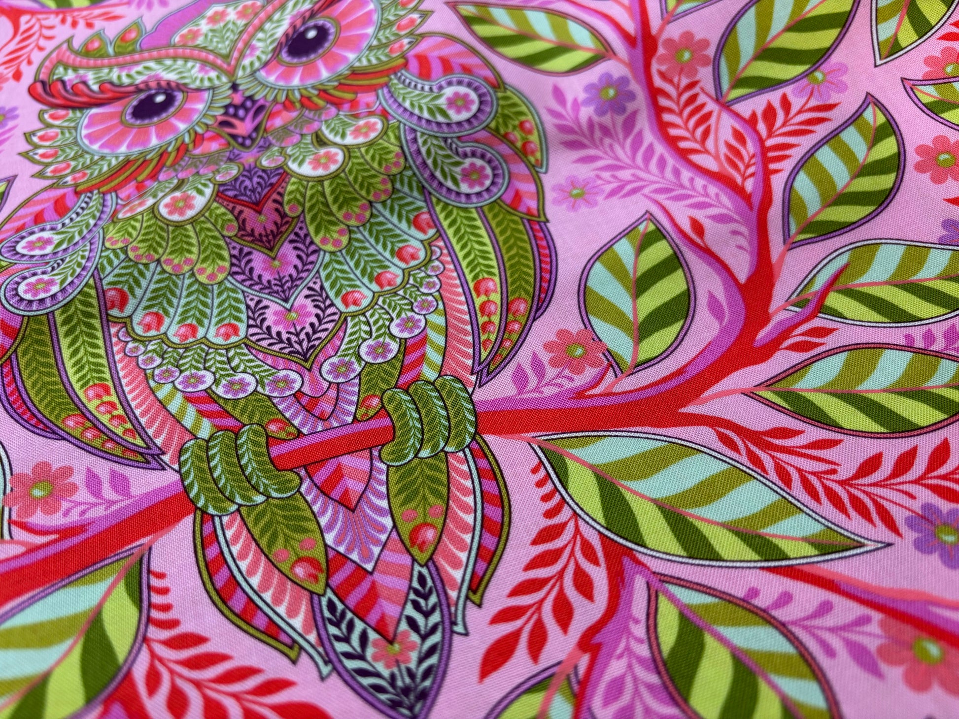 Wow - wir von smilla sind verrückt nach diesen Designs von Tula Pink. Eine große Eule (20 x 14 cm), eingebettet in floralem Design. Alles in leuchtendem Pink, Grün und violetten Tönen - Atemberaubend schön und sehr besonders. Typisch Tula Pink und Free Spirit. - Ein Design für außergewöhnliche Kreationen, Heimtextilien, Modeaccessoires, Patchwork- und Quiltdecken, aber auch Bekeidung. Free Spirit. 100% Baumwolle, 110 cm breit