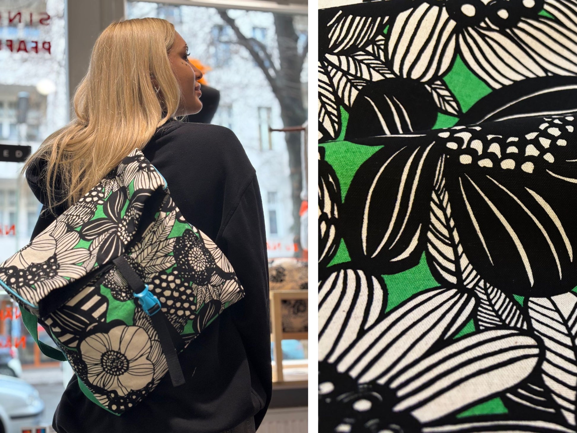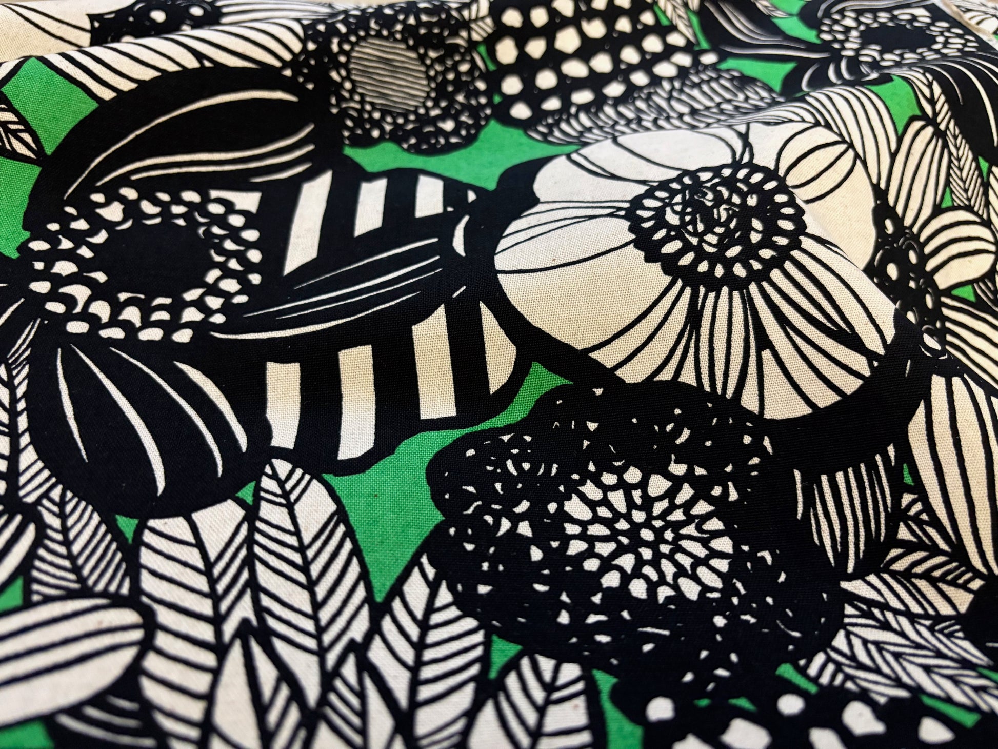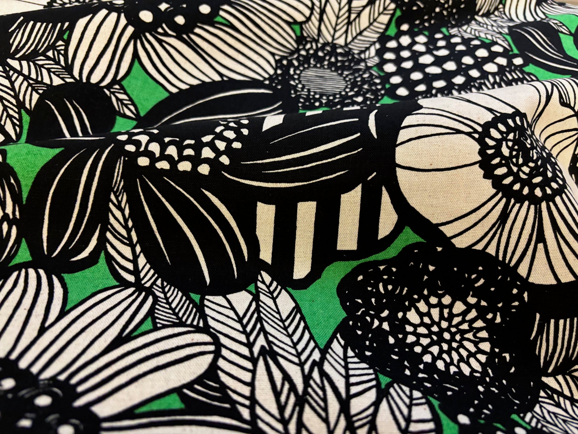 Dekostoff Mega Blumen Schwarz Grün