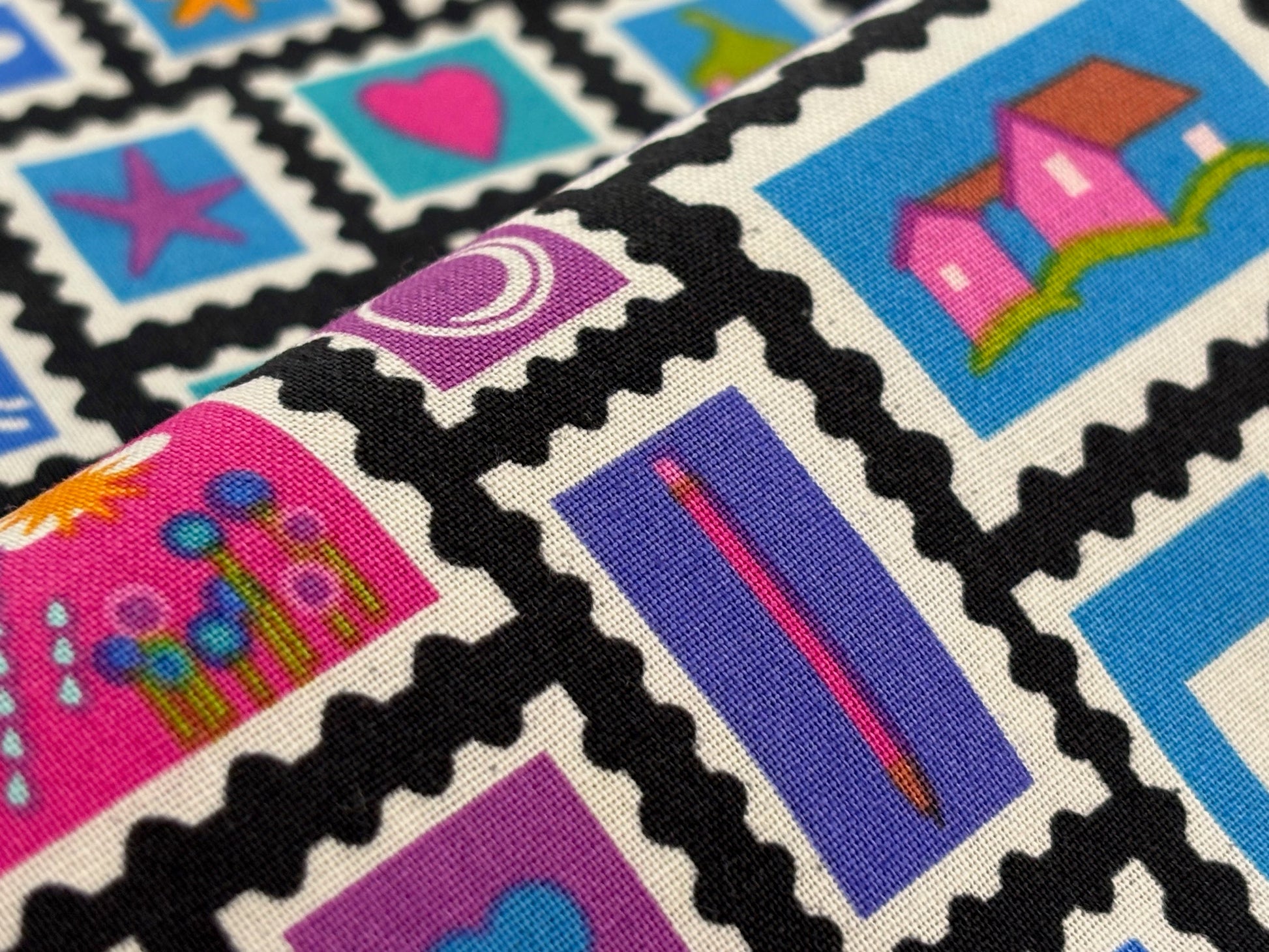 Baumwollstoff Bunte Briefmarken