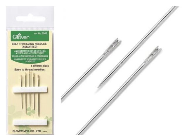 Patent-Handnähnadeln mit Klipp-System. Einfach den Faden von oben in das Öhr drücken, fertig. Kein Suchen nach dem Nadelöhr. Sehr gut auch für Menschen mit Sehschwächen geeignet.