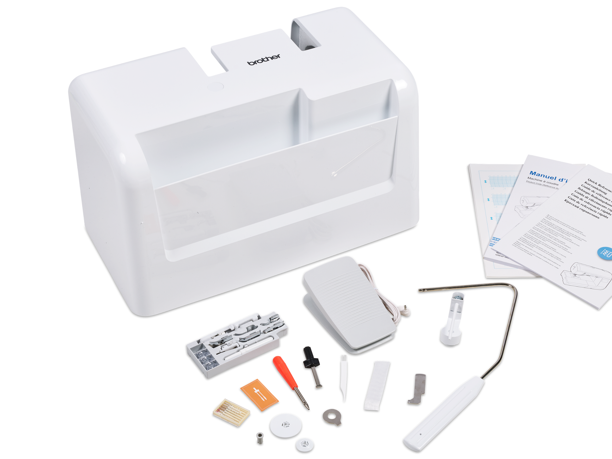 Nützliches Zubehör und weitere Nähfüße sind im Repertoire enthalten.