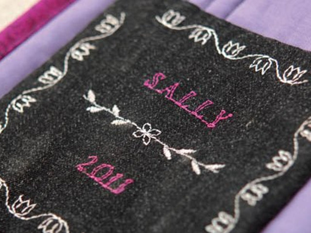 Individuelle Namen und Wörter sticken, 7 mm breit, mit Zierstichen kombinieren und speichern.