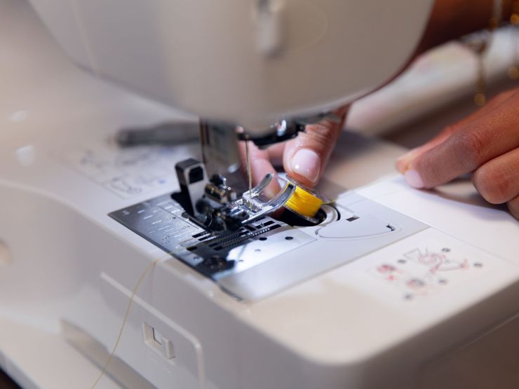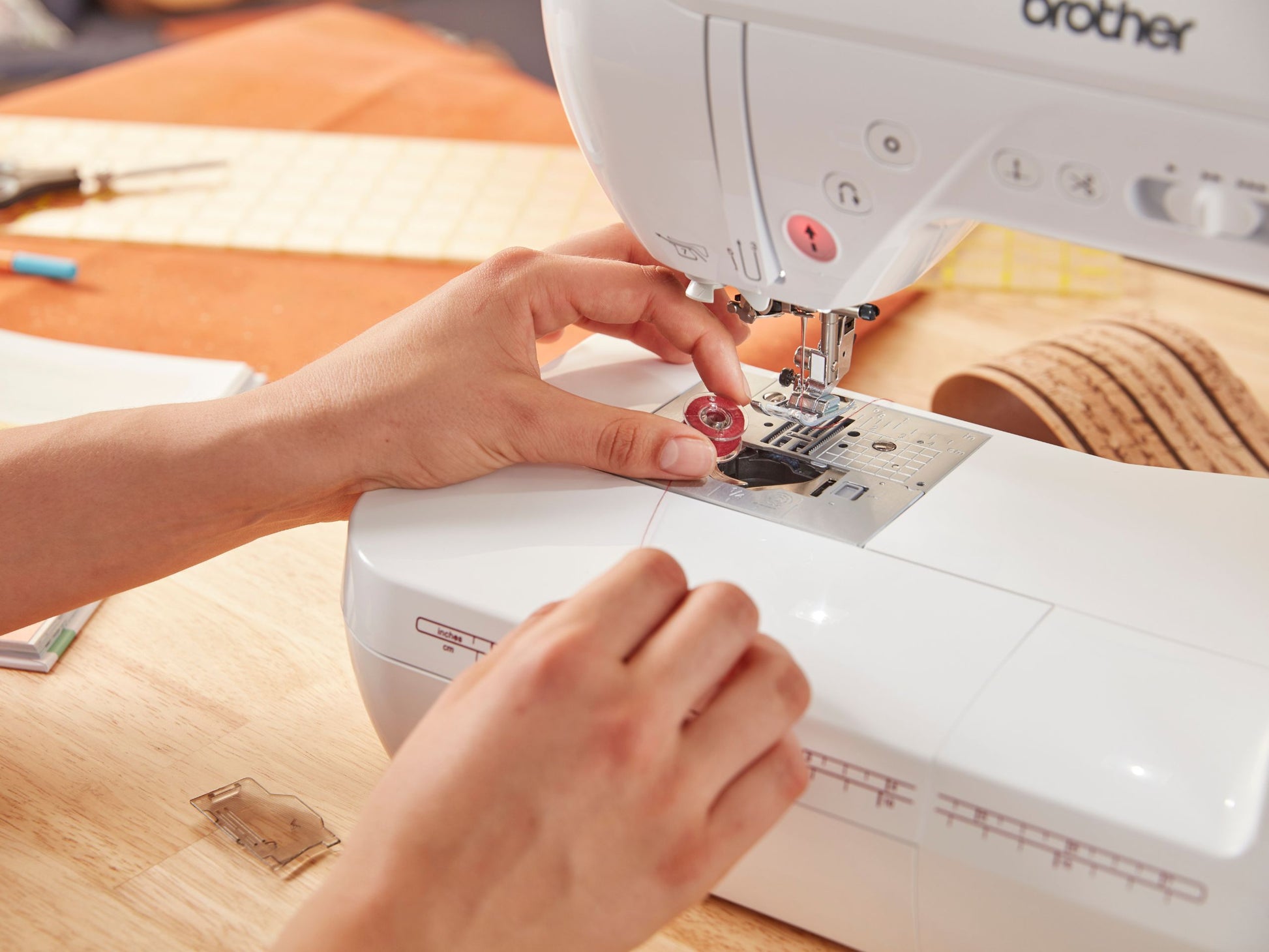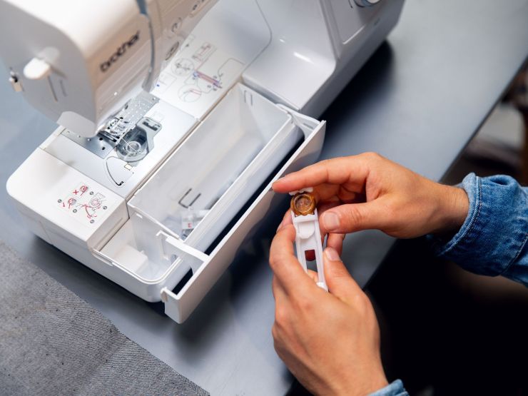 Einfach die volle Spule von oben einsetzen und schon kann das Nähen starten.