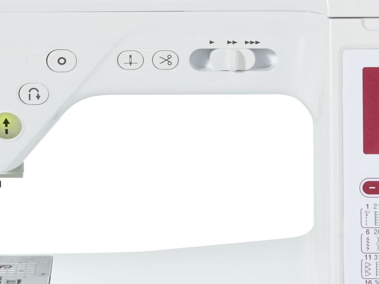Schnell oder langsam nähen, mit Schieber zum Regeln der Nähgeschwindigkeit. Wichtig auch wenn Kinder an der Nähmaschine arbeiten.