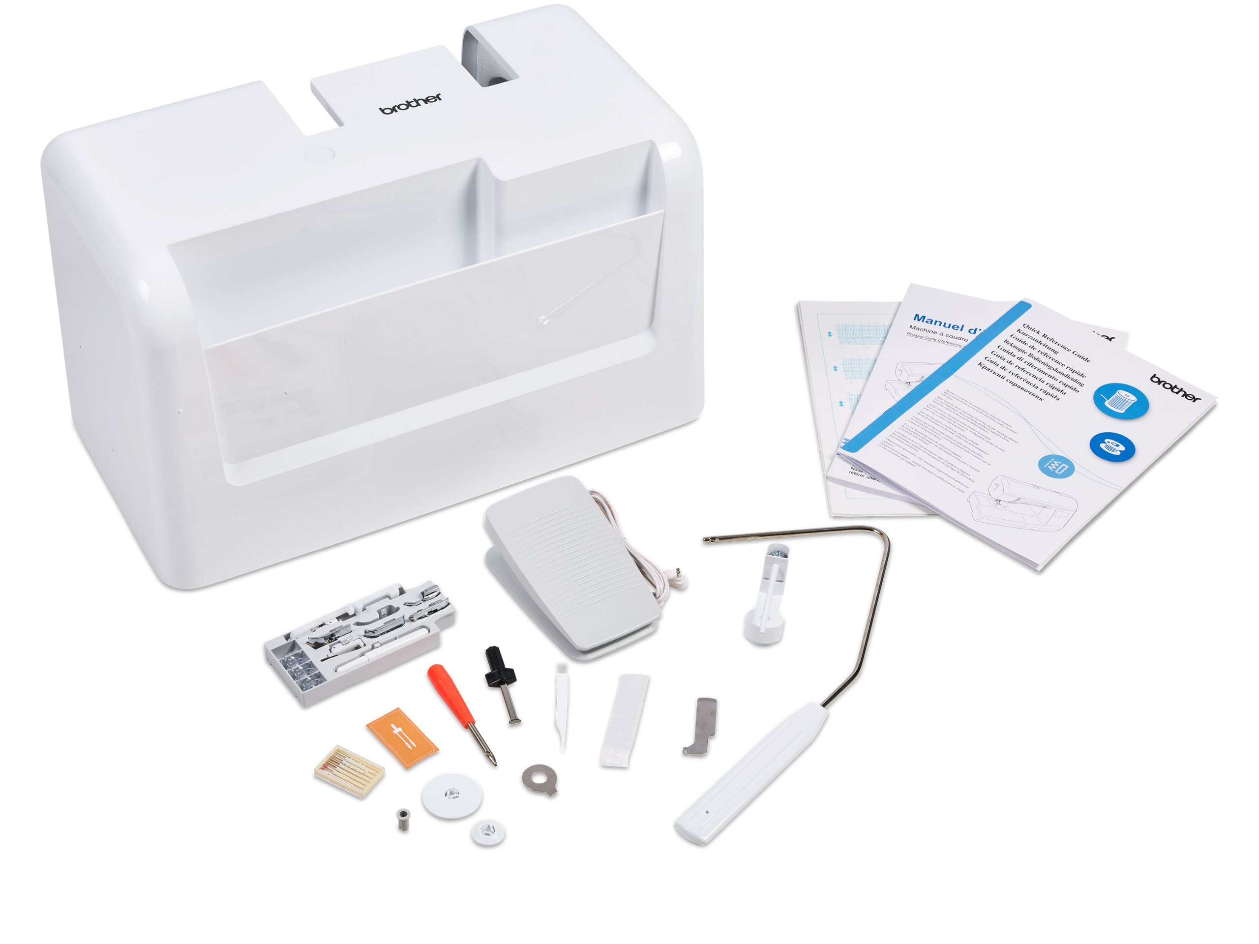 Nützliches Zubehör und weitere Nähfüße sind im Repertoire enthalten.