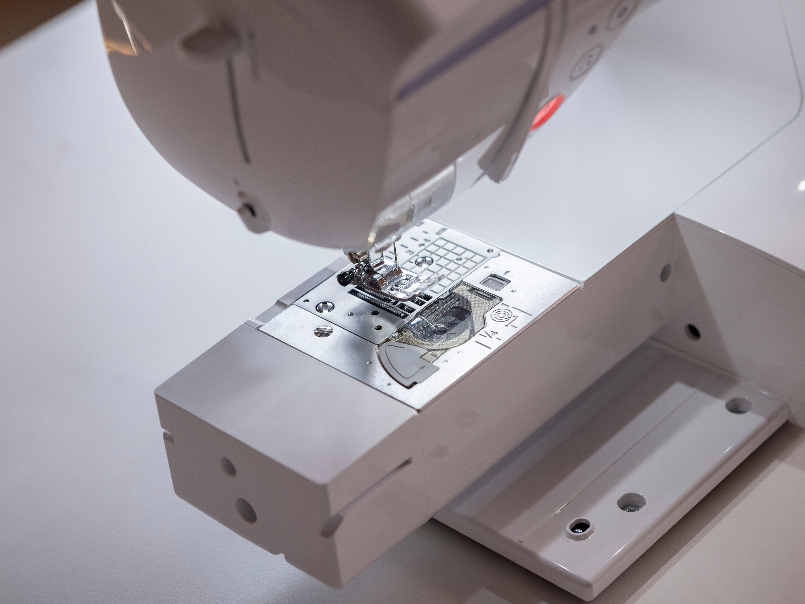 Rechts neben der Nadel großzügige 21 cm Platz. Unverzichtbar bei großen Stoffmengen.