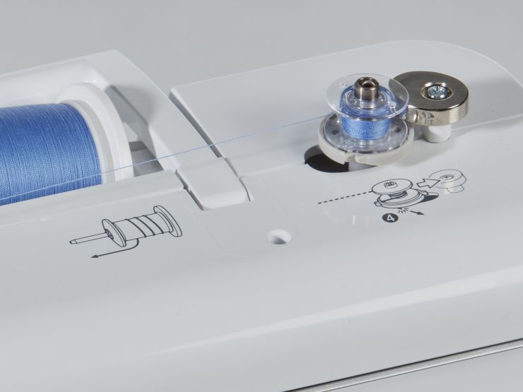 • Unterfaden-SchnellautomatikEinfach volle Spule einsetzen und losnähen