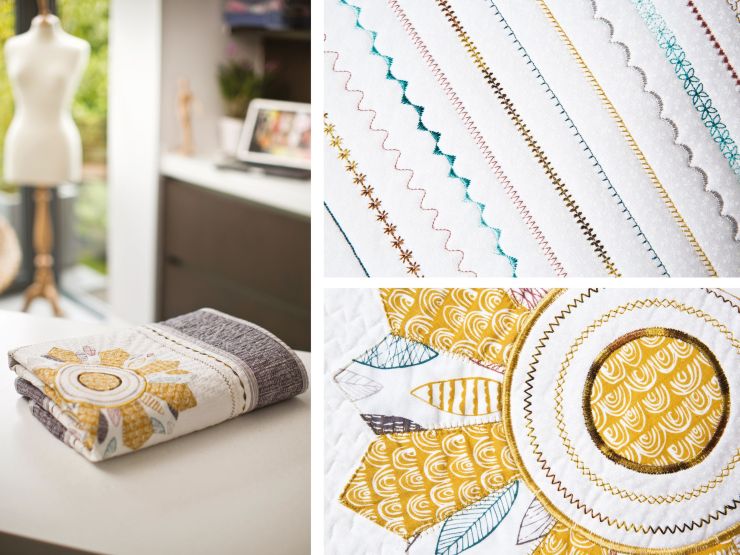 Nähen in bis zu vier Richtungen. Näht besonders große, traumhafte Dekorstiche 40 mm breit, mit seitlichem Stofftransport.