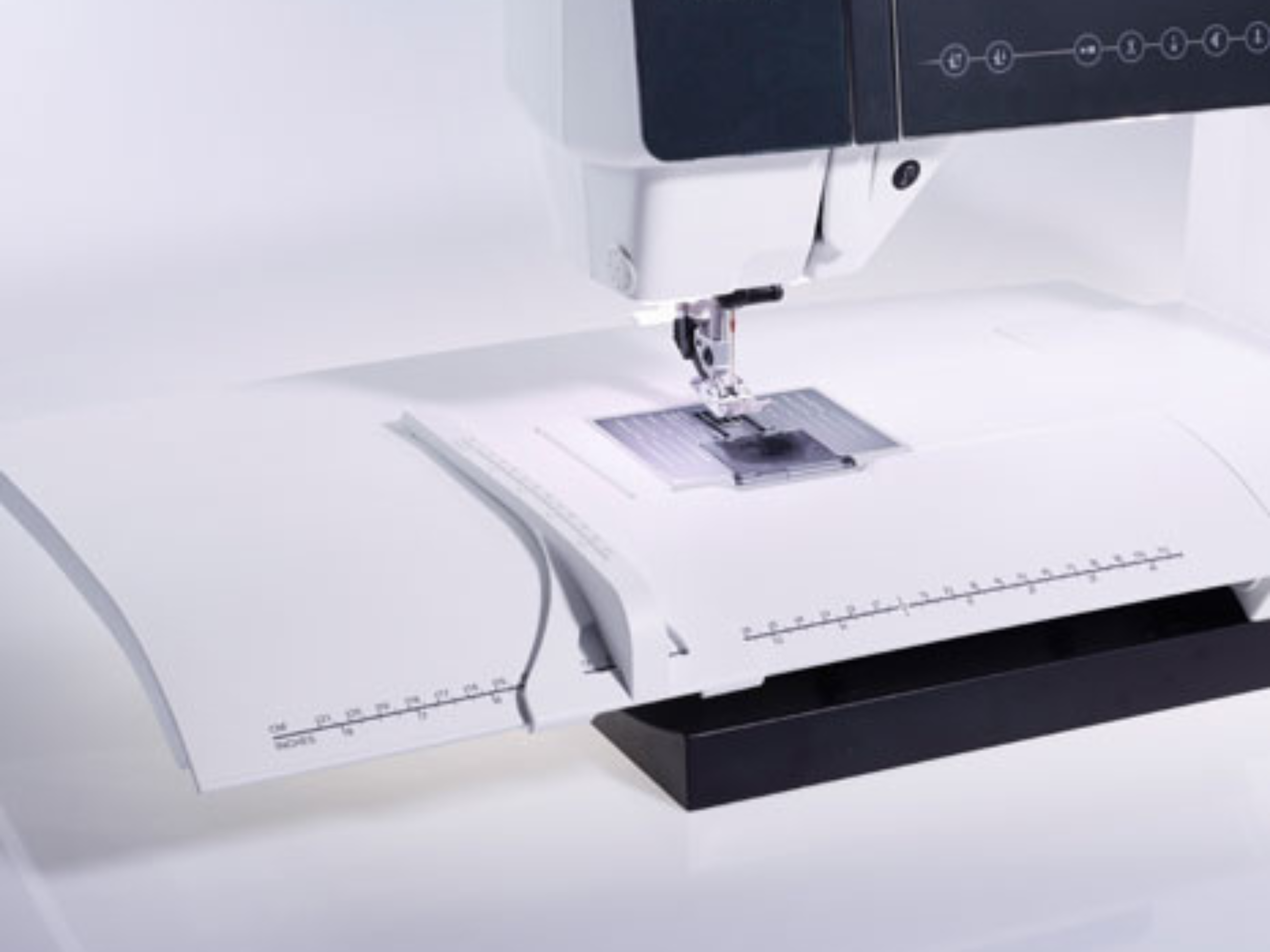 Optional erhältlich - Anschiebetisch zur Nähflächenvergrößerung. Ideal zum Quilten, für Patchworkdecken u.v.m.