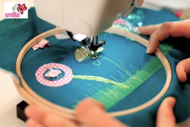 • Während des Stickvorgangs den Stoff weder ziehen noch schieben. Die Nadel kann sich sonst verbiegen oder brechen.