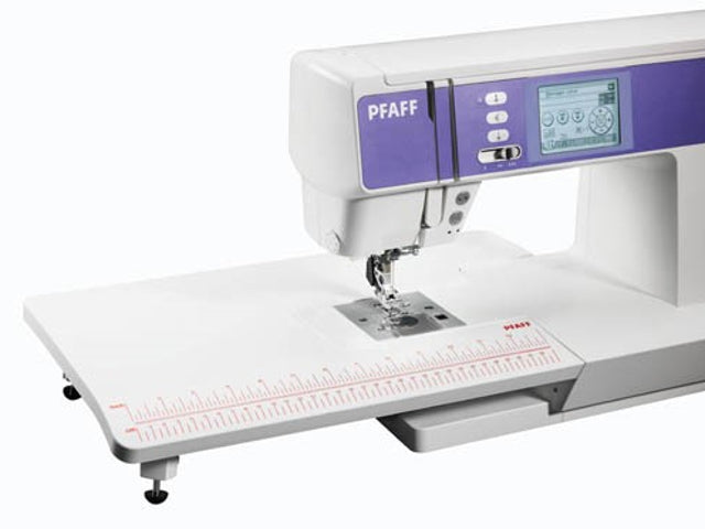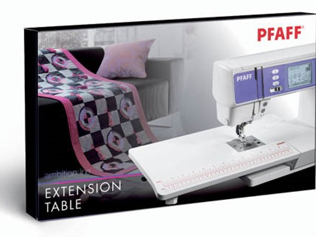 Einfach ansetzen. Vergrößert die Arbeitsfläche der Pfaff ambition Nähmaschinen (Modelle 1.0/1.5/2.0/essential) um ein Vielfaches. Für bequemes und komfortables Arbeiten. Ideal auch bei größeren Stoffmengen.
