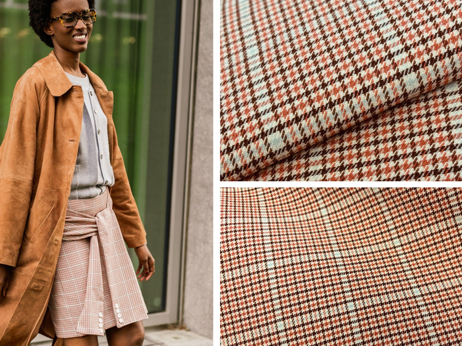 Karo Check- Klassisches kariertes Design in Bordeaux, Rot, Natur und Mint. Gewebt, von beiden Seiten schön. Festeres Viskosegemisch mit Stretch, toll für Röcke, Hosen, Jacken. Aus der Fibre Mood Collection. Tipp: Fibre Mood Nähmagazin No. 36, Rock: Schnitt MIREYA, 75% Viskose, 22% Polyester, 3% Elasthan, 145 cm breit, 260 g/m².