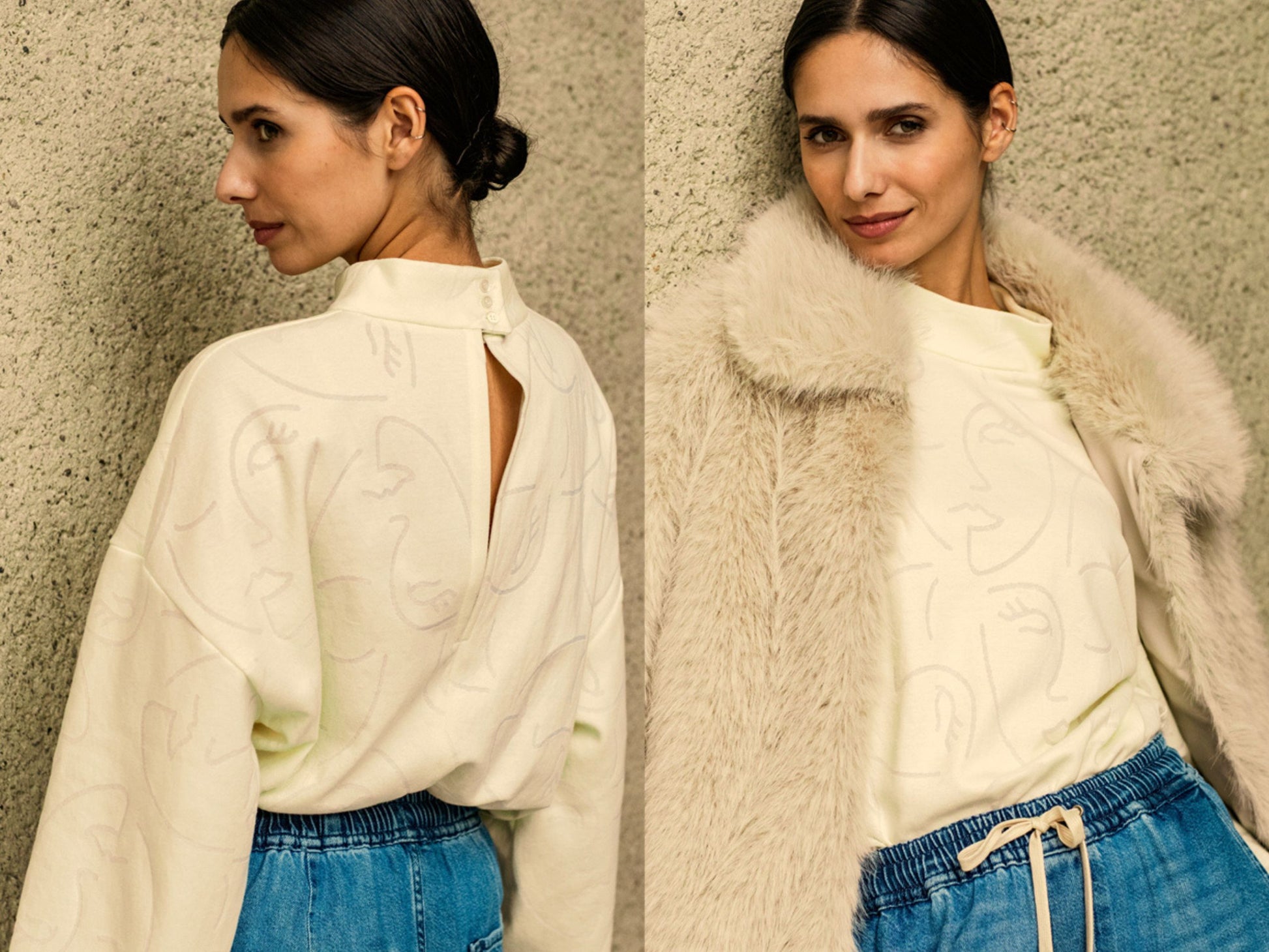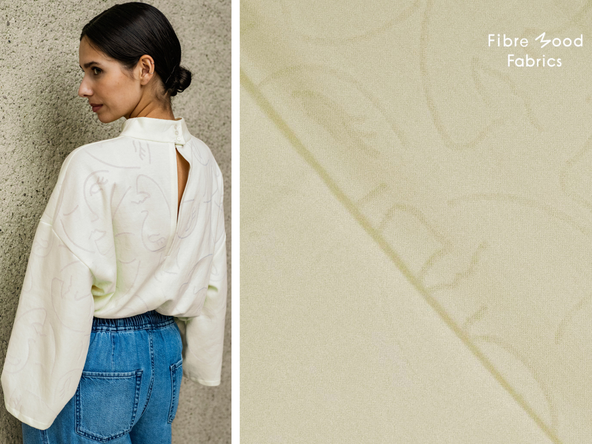 Weiches, gewebtes Material in zartem OFF Whithe/Pastellgelb, mit eingewebtem Ornamentmuster. Superangenehm auf der Haut. Weich wie Musselin. Aus der exclusiven Fibre Mood Collection. Ideal für Oberteile, Blusen, leichte Kleider, Schals und mehr. Tipp: Fibre Mood Nähmagazin No. 36, Bluse Schnitt SAMIRA. 77% Baumwolle, 15% Polyester, 8% Nylon, 170 cm breit, 210 g/m².