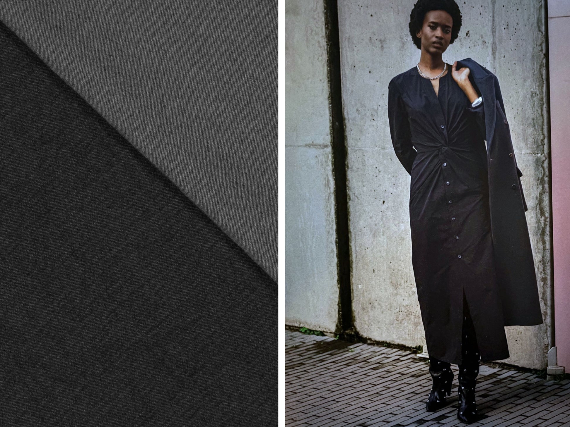 Baumwolljeans in Dunkelgrau/Anthrazit, aus der Fibre Mood Collection. Für modische Outfits, Jacken, Hosen, Mäntel und Kleider. 100% Baumwolle, 280 g/m², Super: 170 cm breit. Tipp: Fibre Mood Nähmagazin No. 36, Kleid, Schnitt: MILENA.