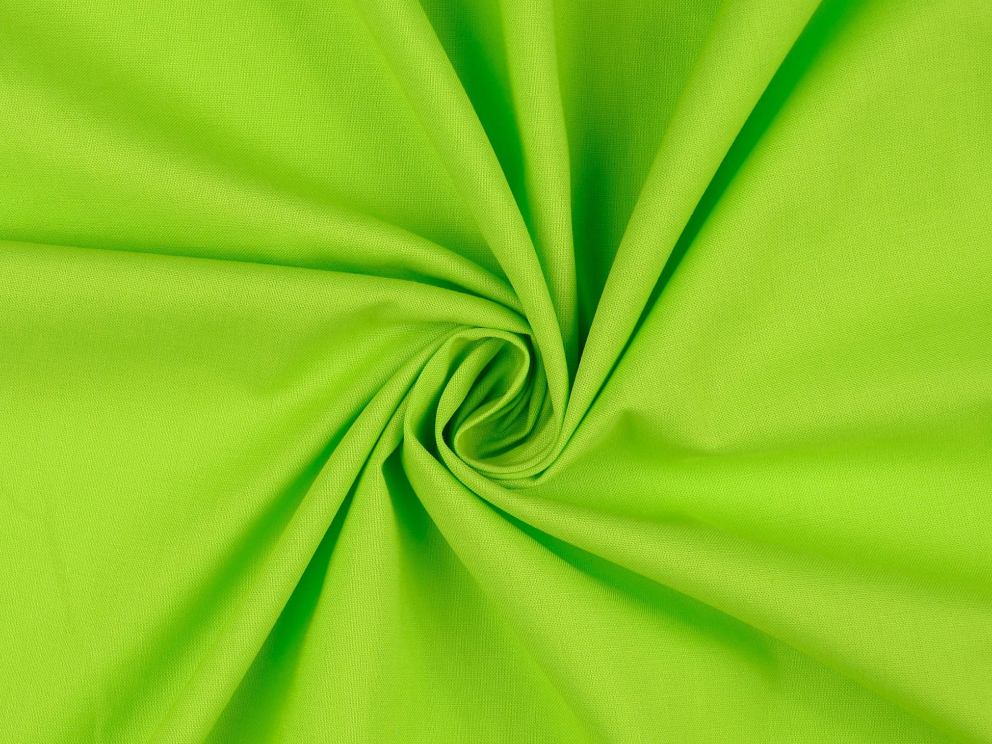 Baumwollstoff in unifarbenem, leuchtendem Lime-Hellgrün. Popeline aus 100% Baumwolle, 150 cm breit, 130g/m².