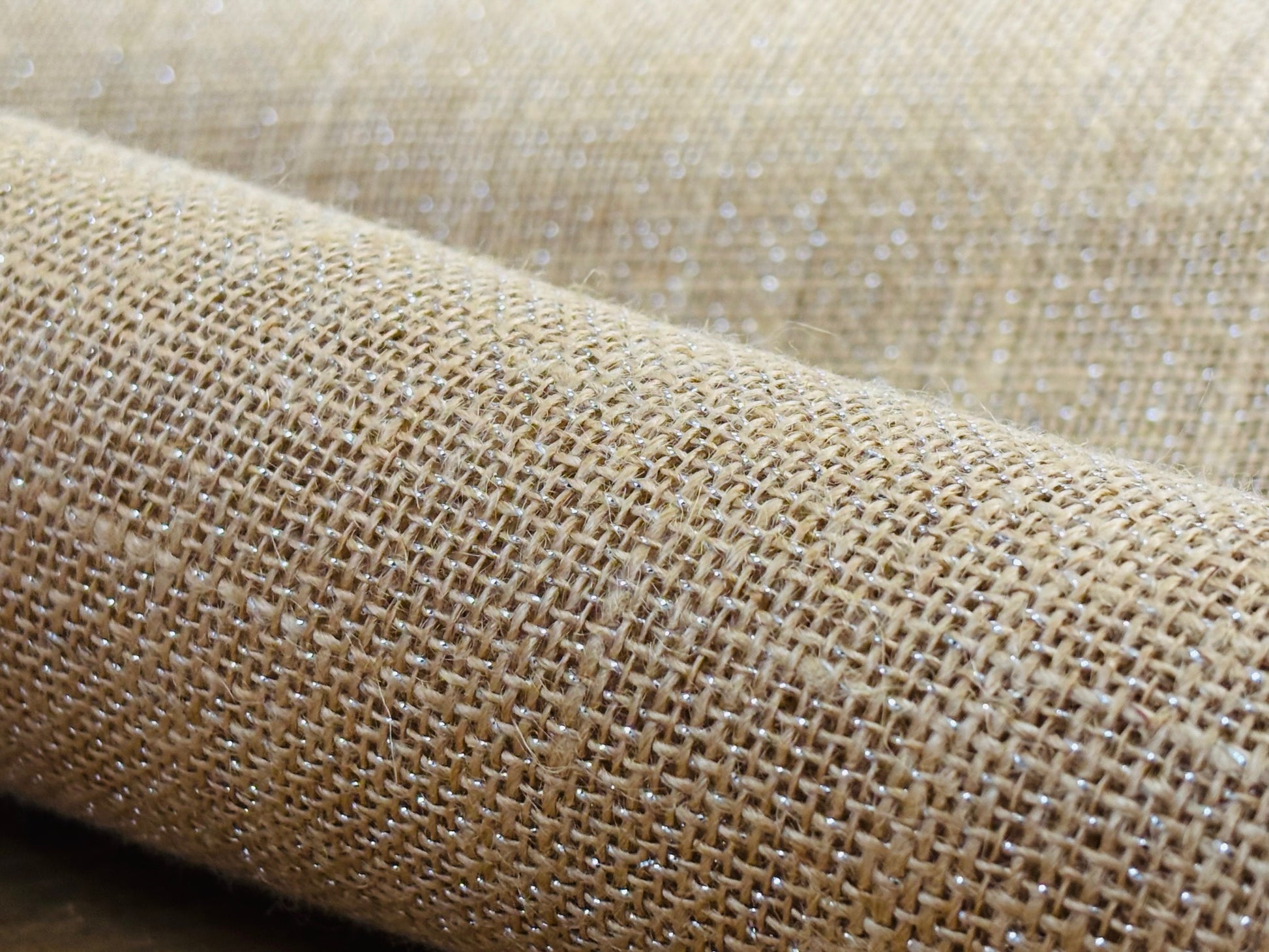 Jute-Stoff mit Silber-Glitzer