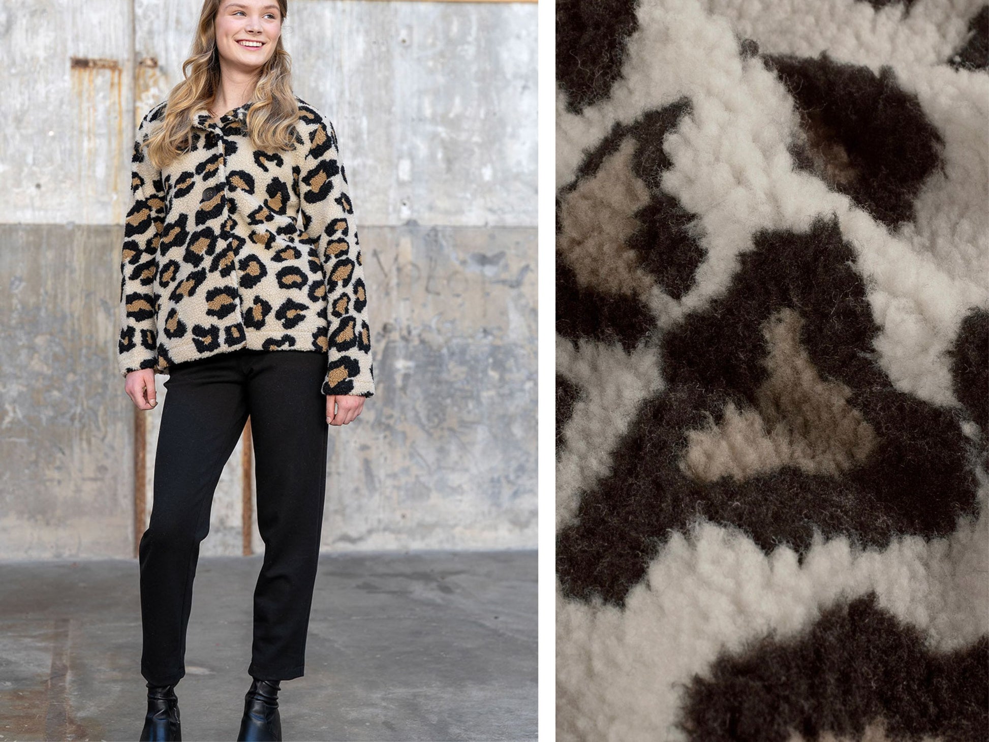 Kuscheliger Stoff mit plakativem Leomuster in Baun/Beige . Für Jacken, Oberteile, Westen, Kindersachen und mehr. Für die kalte Jahreszeit schön warm und voll im Trend. Der Stoff für Deinen Winterlook. 100 % Polyester, 285g/m². 165 cm breit.