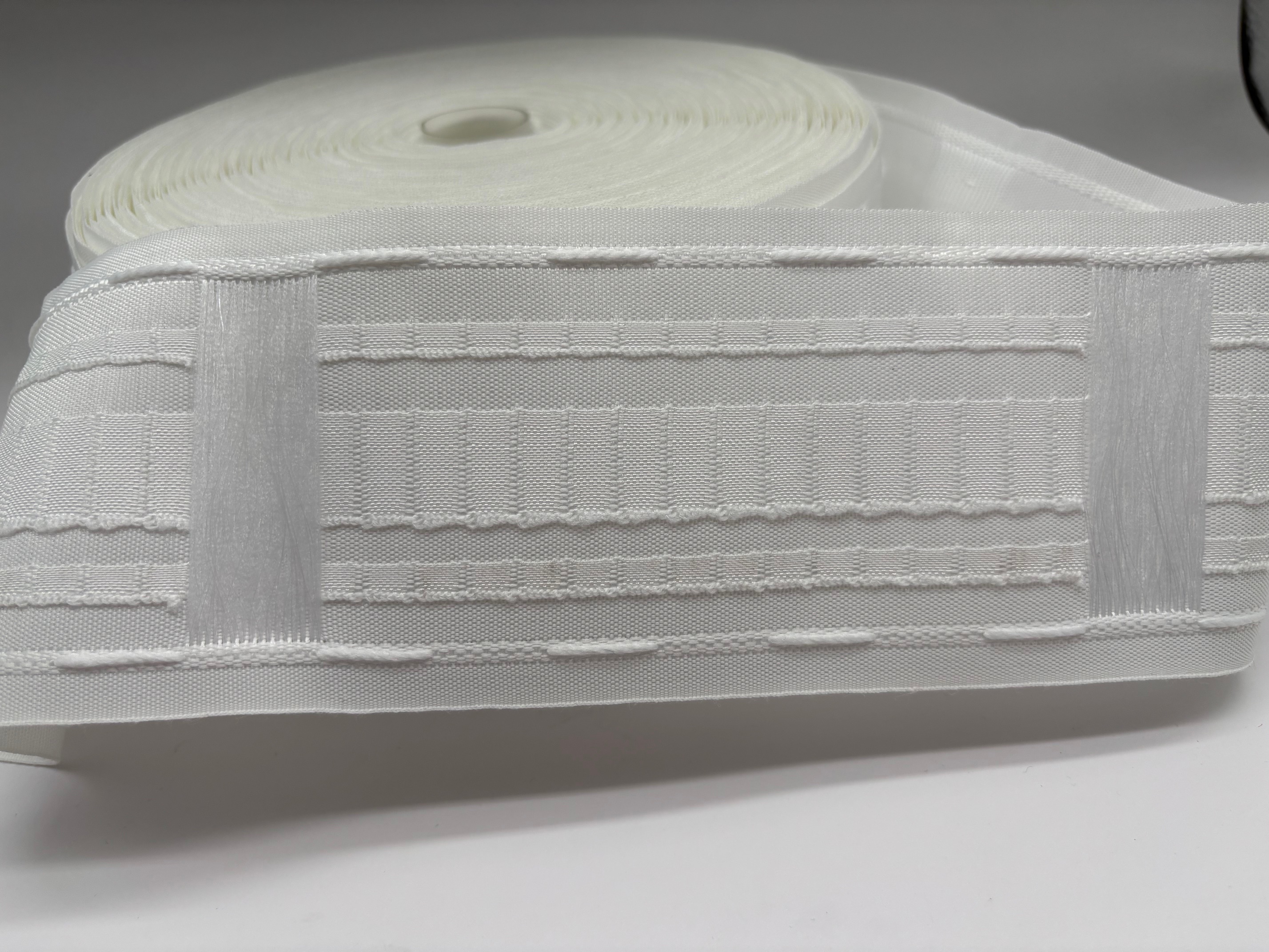 Kräuselband für Gardinen, 22 mm breit, für Innenlaufrollen zum Einhängen, zum beliebigen Kräuseln einfach an den Fäden ziehen.