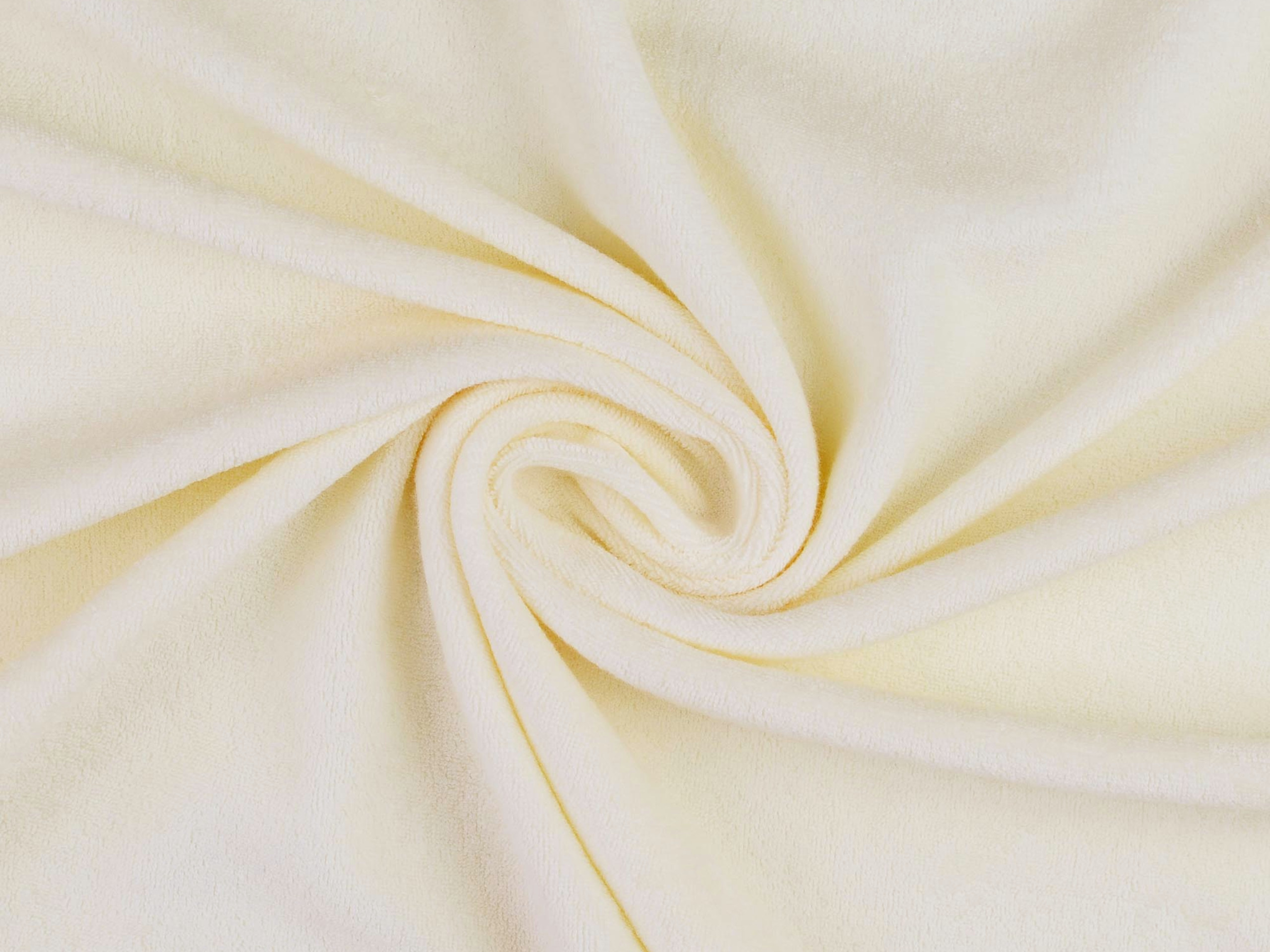 Brandneu! Tolles Material für lässige und sportliche Shirts, Polos, Kleider, Kindesachen. Frottee Jersey, 80 % Baumwolle, 20% Polyester in schönem Naturweiß. 150 cm breit. Angenehm auf der Haut und total angesagt. An diesem Stoff kommt in diesem Jahr garantiert keiner vorbei.
