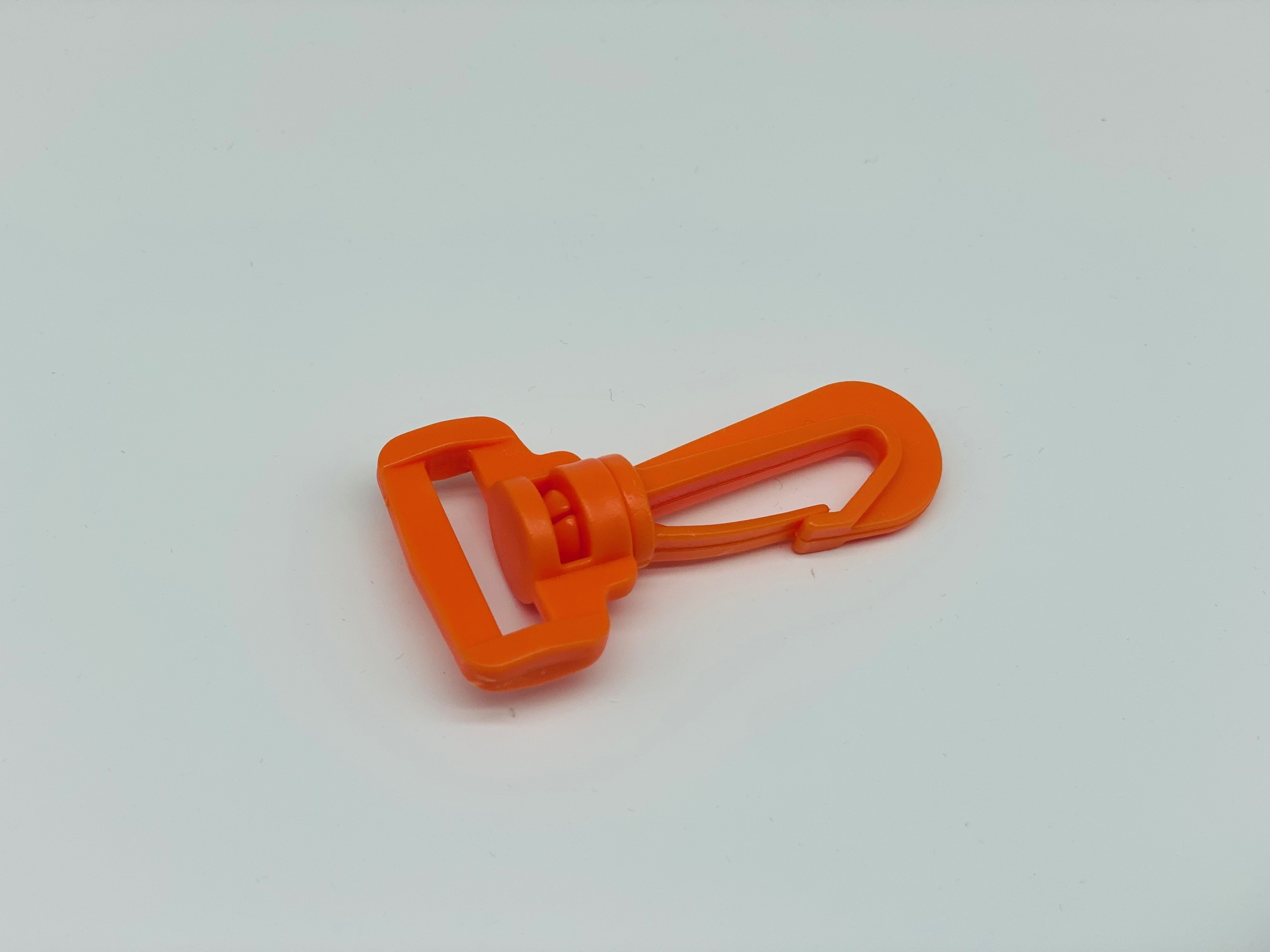 Orangefarbener Karabiner aus Kunststoff für 25 mm breites Band. Praktischer Taschenverschluss. D- Ring nicht vergessen!