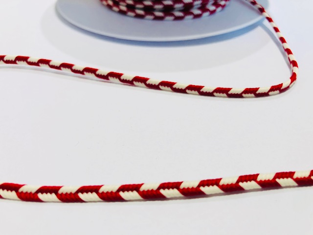 Strapazierfähige Polyesterkordel, 4 mm, mit schönem Muster in Petrolgrün/Weiß. Schafft dekorative Momente, toll auch für Turnbeutel, Rucksäcke und vieles mehr. Meterware, 100% Polyester, waschbar. Auch in anderen Farben erhältlich.