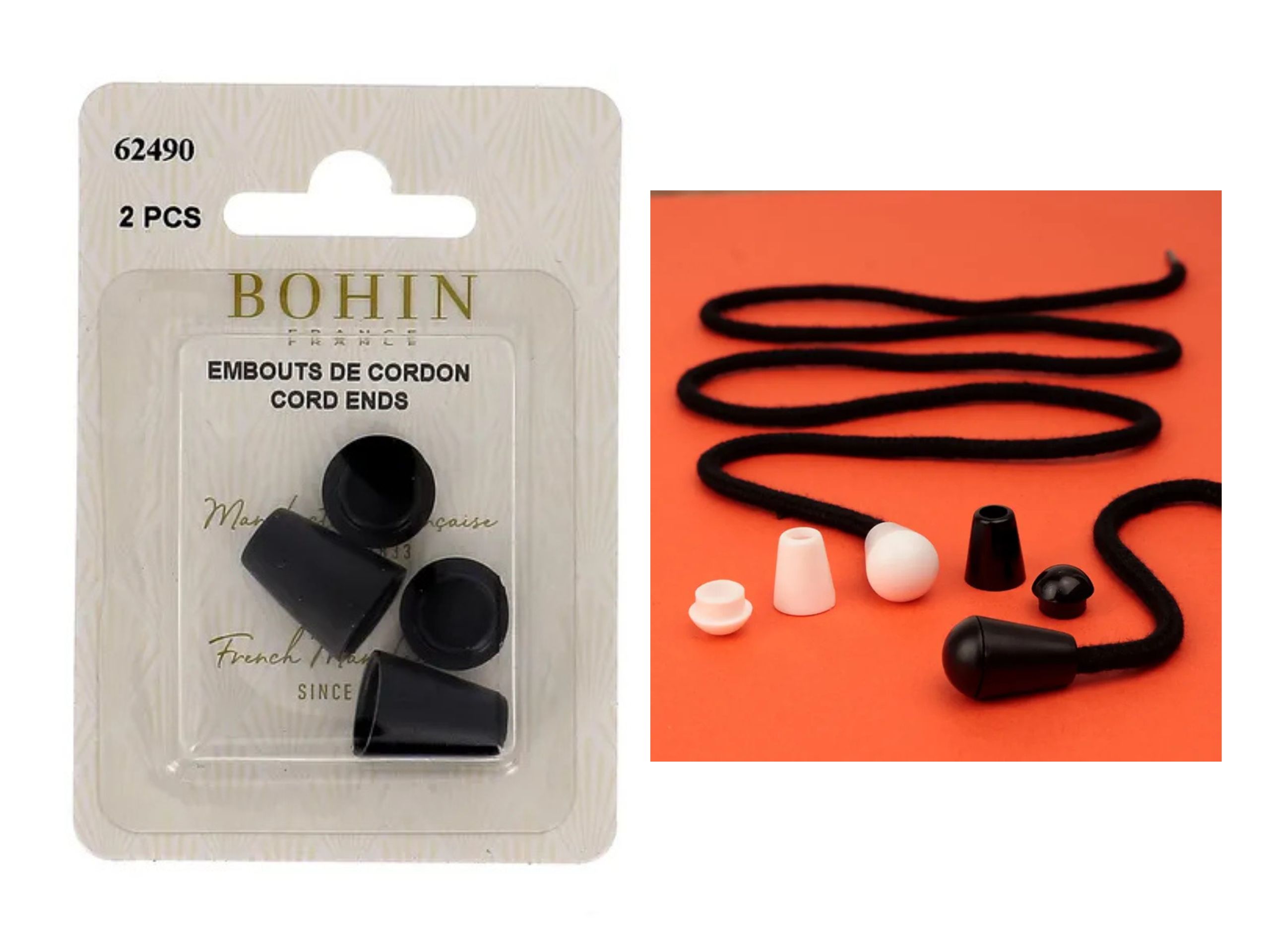Kordelenden in schwarzem Kunststoff, zum dekorativen Verdecken und Sichern von Kordeln. Verhindern das Durchrutschen. Schön für Jacken, Hoodies, Taschen und mehr. Durchmesser für Kordel: 13,3 mm, 22,5 mm hoch. 2 Stück.