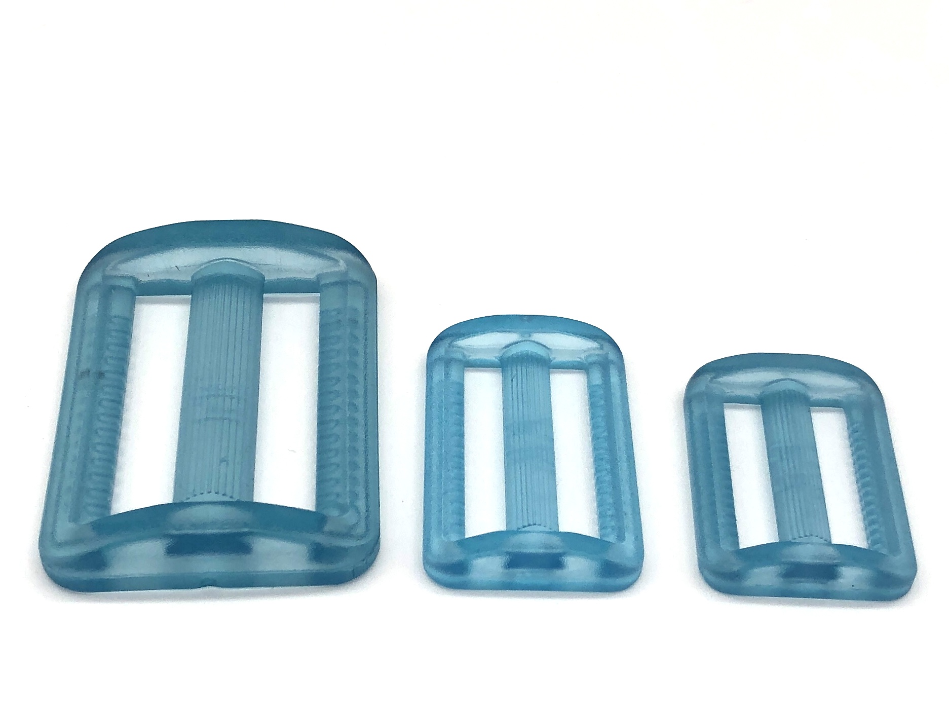 Gurtband-Versteller in vielen Farben. Zur Längenregulierung von 25 mm breitem Gurtband. Aus transparentem Kunststoff.