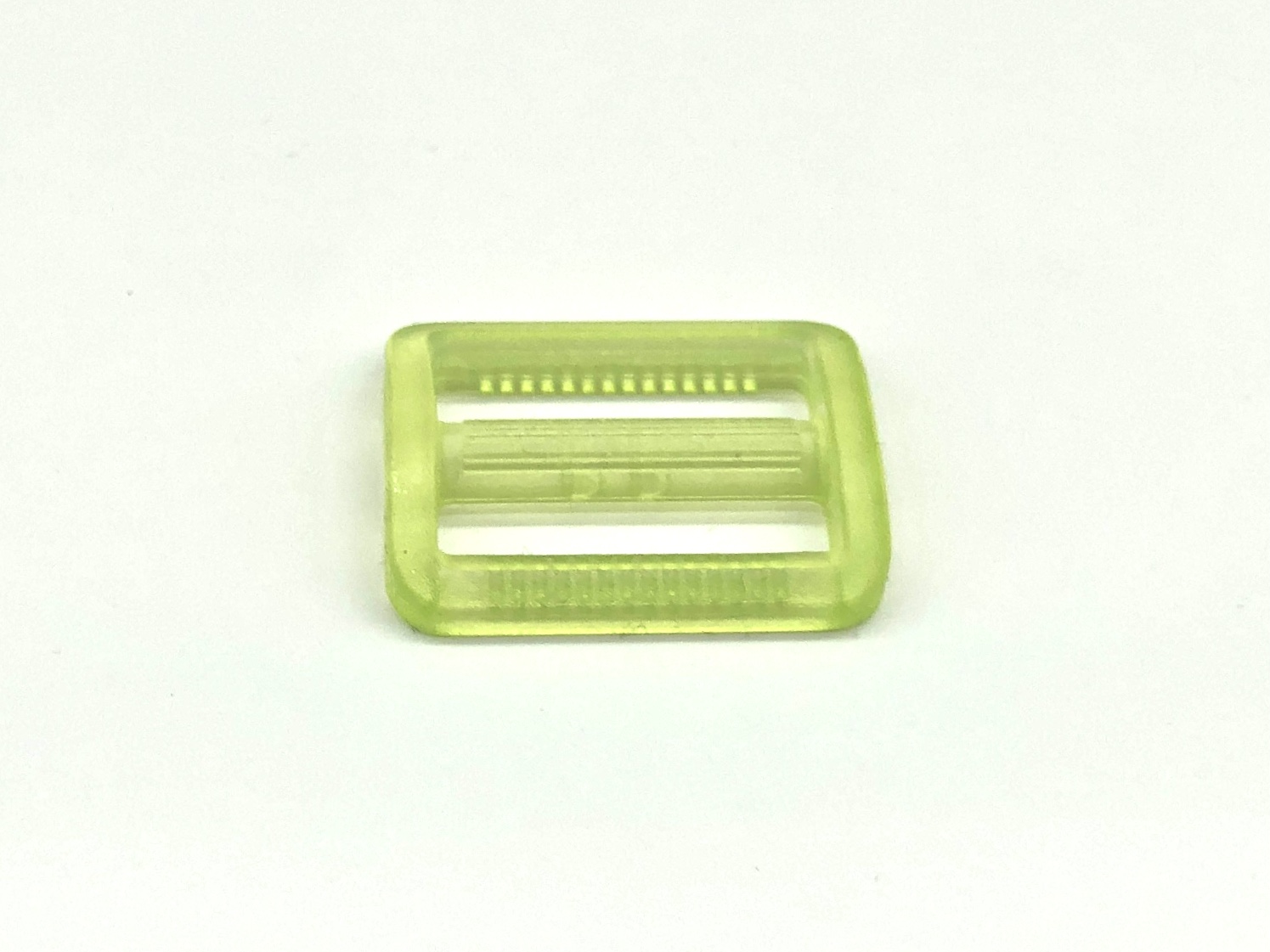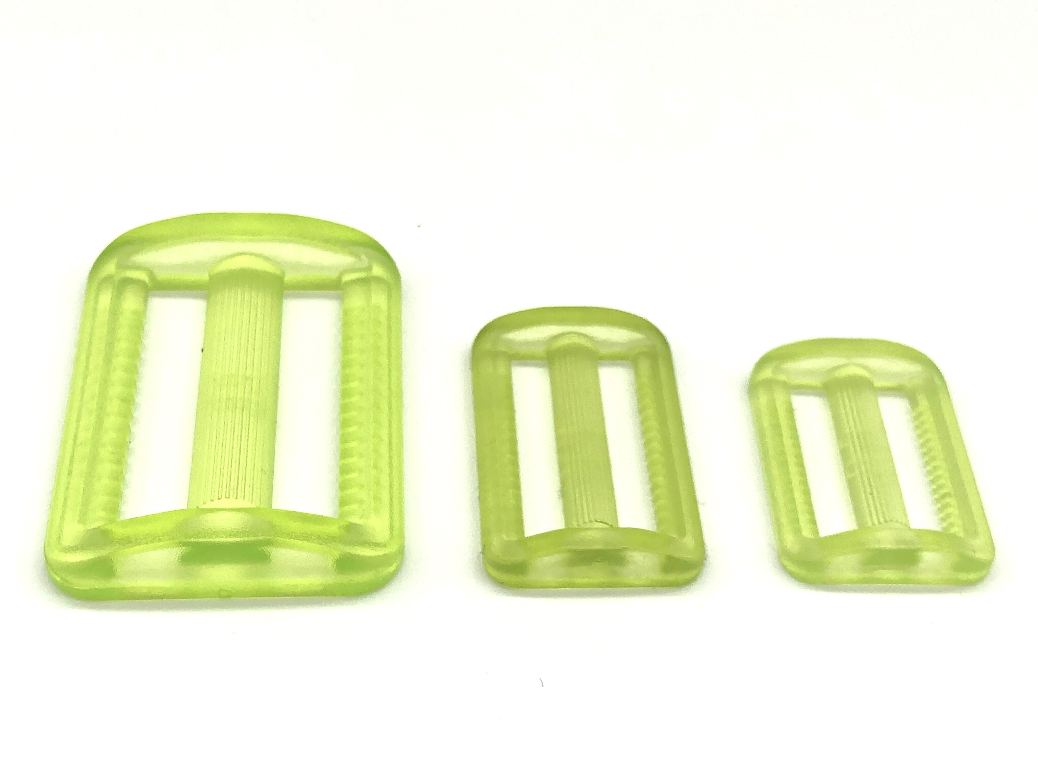 Gurtband-Versteller in vielen Farben. Zur Längenregulierung von 25 mm breitem Gurtband. Aus transparentem Kunststoff.